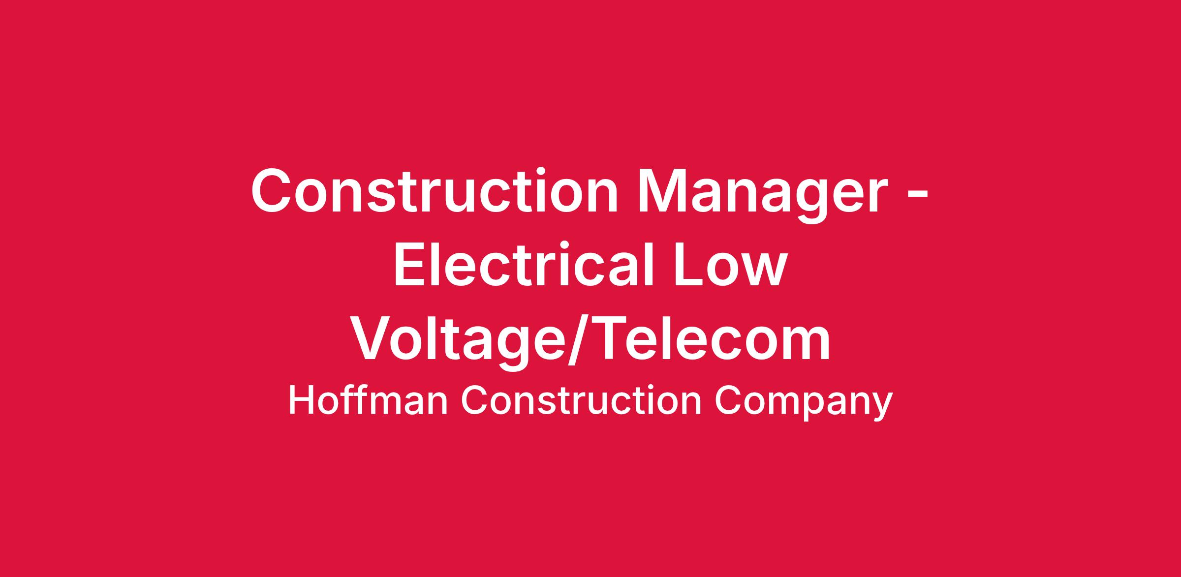 Position Summary: The Low Voltage Construction Manager will manage the low voltage electrical team and information from start to finish for large hi-tech projects. The Low Voltage Construction Manager will collaborate with design professionals, clients, subcontractors, and craftspeople to address complex low voltage electrical coordination issues. This position is on the front line to aid in avoiding and solving technical problems that arise. The Low Voltage Construction Manager will lead onsite low voltage electrical quality control efforts, which will include document review during preconstruction through commissioning and punch list.