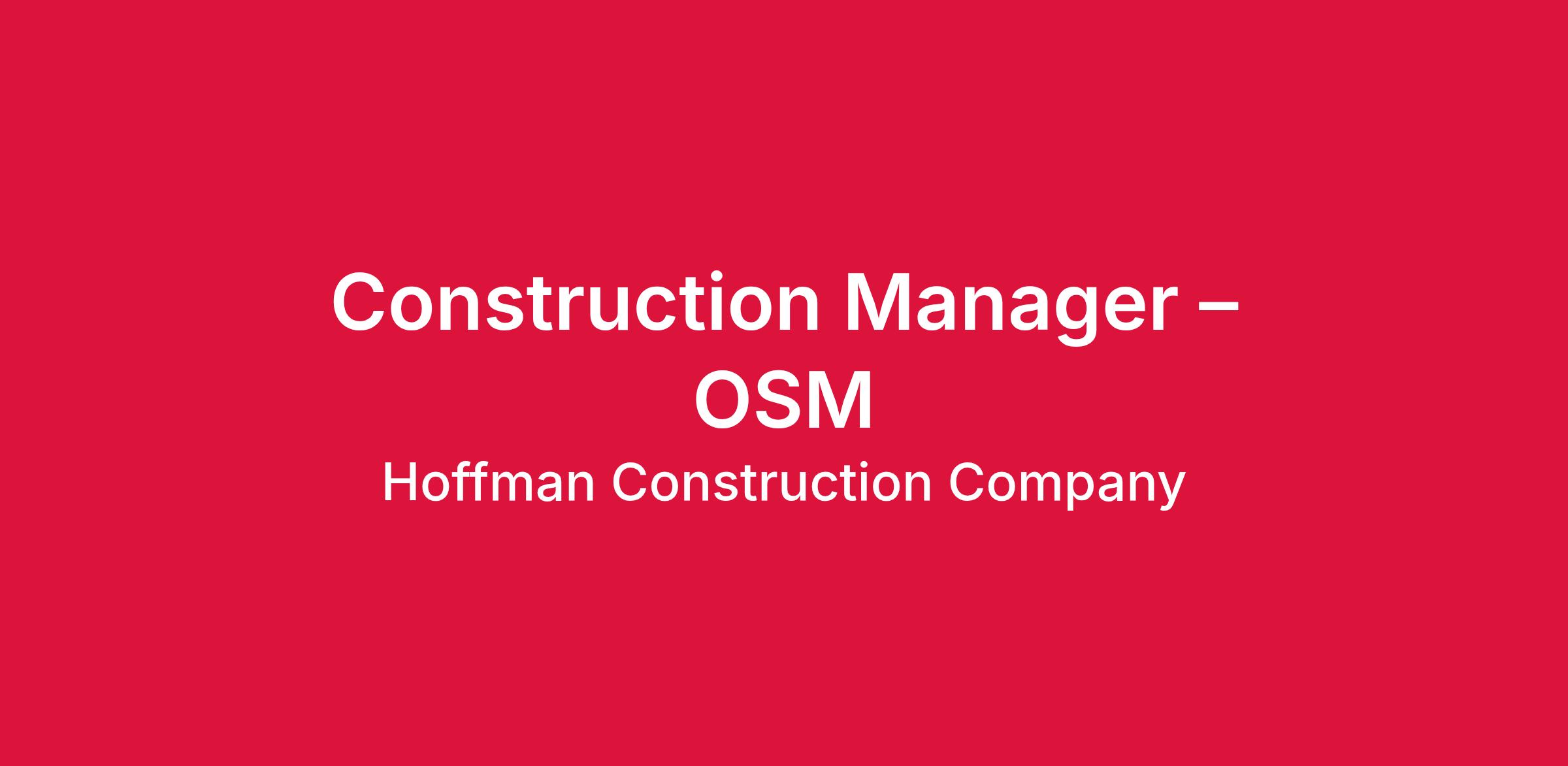 Application review will consider without limitation the following criteria: qualifications, education, and experience specific to the job description/duties as well as prior experience with Hoffman Construction. Applicants must be able to pass the Hoffman Drug and Alcohol test.