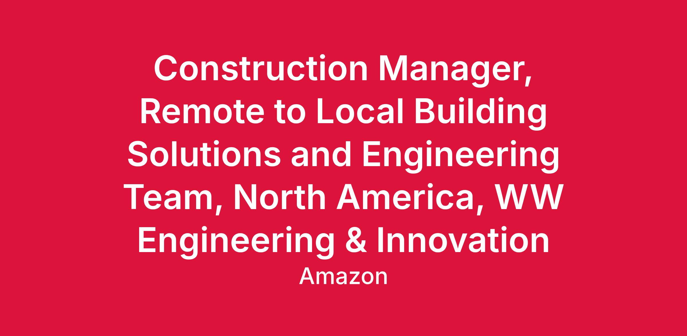 Do you want to be part of an organization that is on the leading edge for operations, supply chain, and fulfillment design? The Rapid and Rural Logistics team is looking for a proven technical leader with extensive experience planning and managing the execution of large scale construction programs. As the R2L (Remote to Local) Construction Manager (CM), you will work with broad set of stakeholders including Real Estate, Operations, Design, Launch, Startup, Delivery Experience, Legal and Retail to take the fulfillment center design from concept through the hand off to Operations. This position requires a firm understanding of engineering, planning, program management, contract administration and operations.