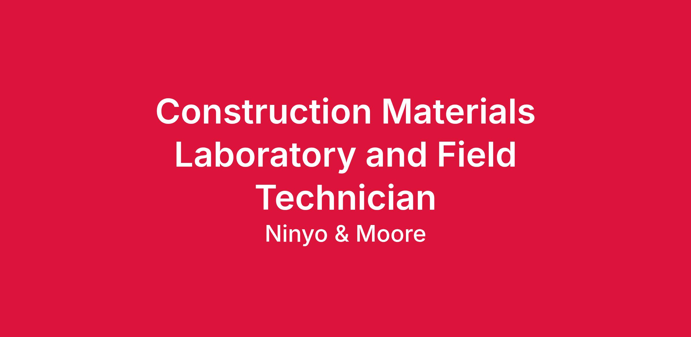 Job Description: Ninyo & Moore, a SOCOTEC Company, has an immediate opening for an experienced Field and Lab Technician in Las Vegas, Nevada. Duties will include performing lab and field testing, the maintenance of field and laboratory equipment, data files, reports, letters, and other pertinent field data. The successful candidate will also maintain clear communications with the Project Manager / Supervisor regarding all aspects of the field / lab operations, such as providing neat and orderly project documents.