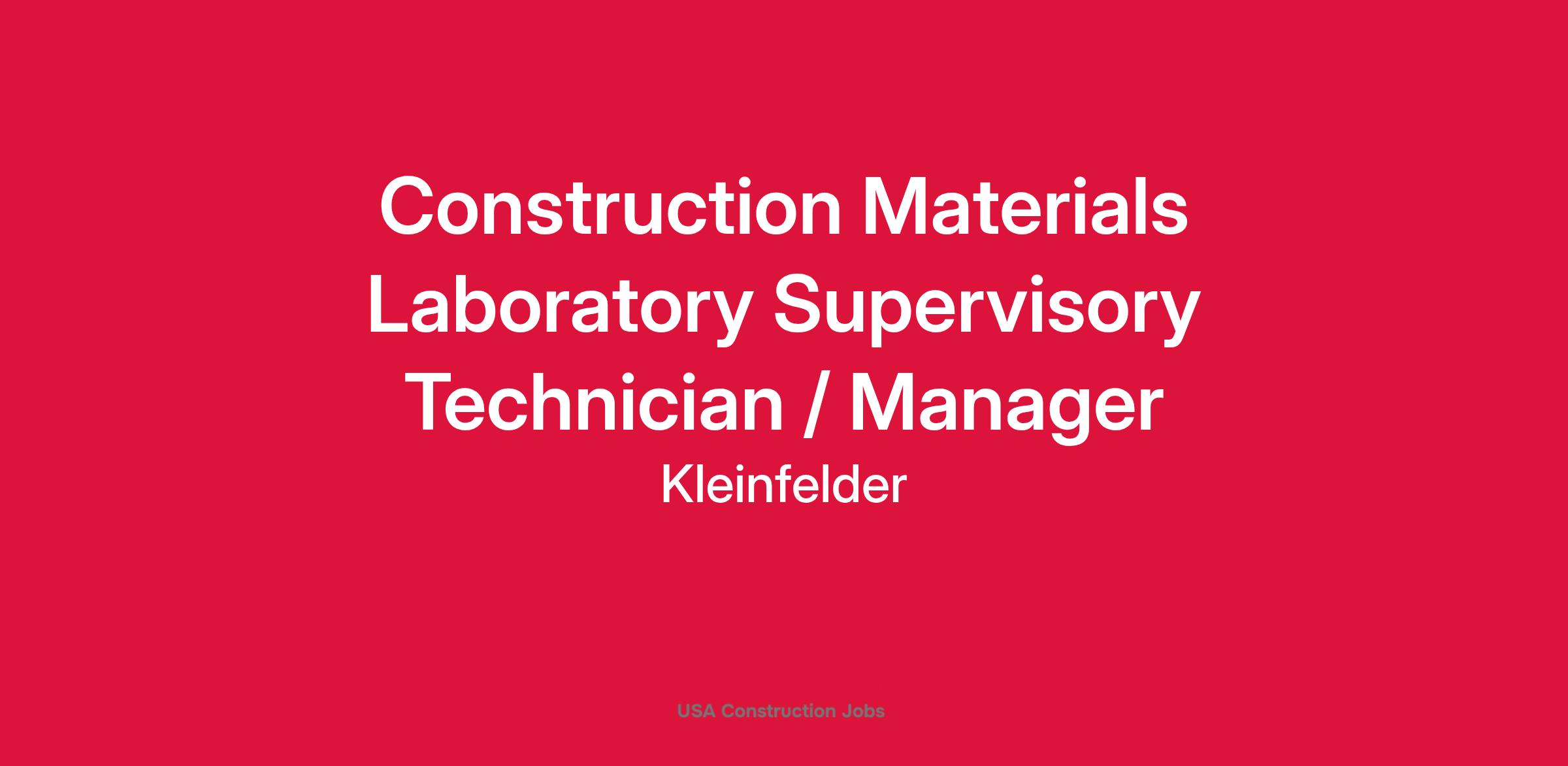 Kleinfelder is currently seeking a Construction Materials Laboratory Supervisory Technician / Manager to perform testing, and provide coordination, quality management, and oversight to its lab in Las Vegas, NV.