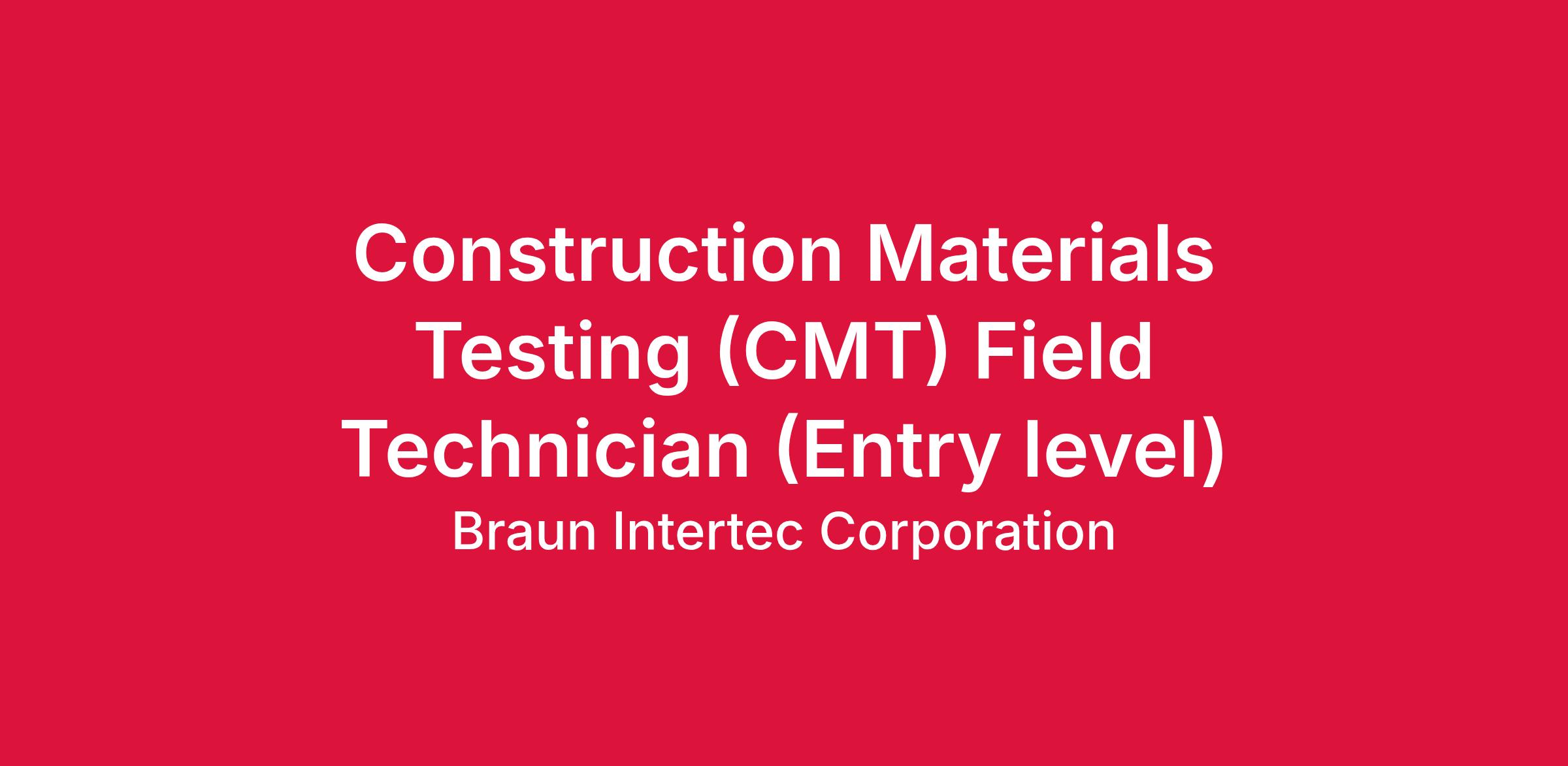 Braun Intertec is seeking Construction Materials Testing Technicians to join our team in Wichita Falls TX. No experience necessary.
