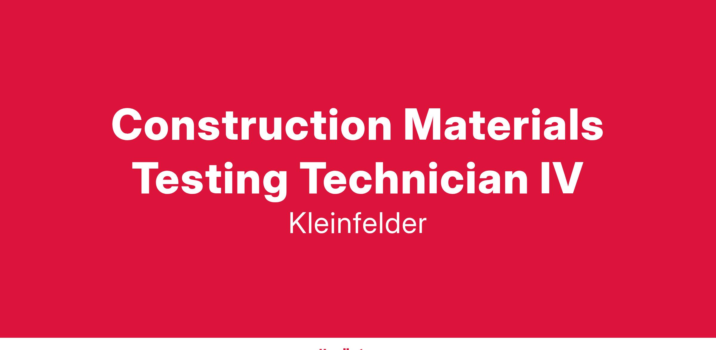 Kleinfelder's Irving, TX office is seeking a Technician IV to join our growing team.