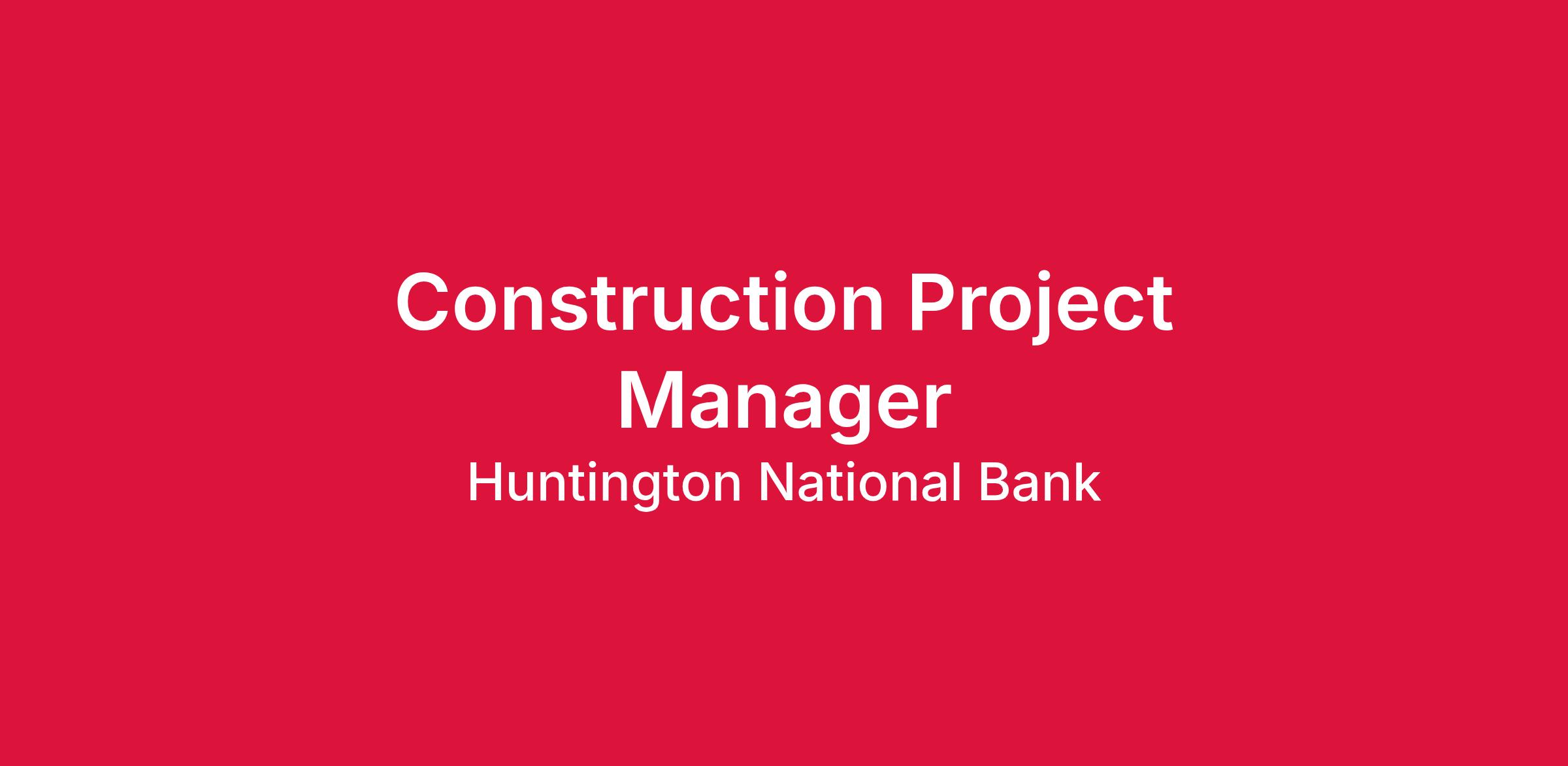 The Construction Project Manager manages all aspects of Construction and Renovation projects from conception to finished product and project close-out, ensuring maximum benefit for Huntington colleagues and customers. Responsibilities include but are not limited to Architect/Engineer/Contractor selection and management, cost estimating, bidding, contract negotiation, budget tracking, project scheduling, vendor coordination, construction management, and communication with project team to deliver a fully integrated and operational project on time and on budget.