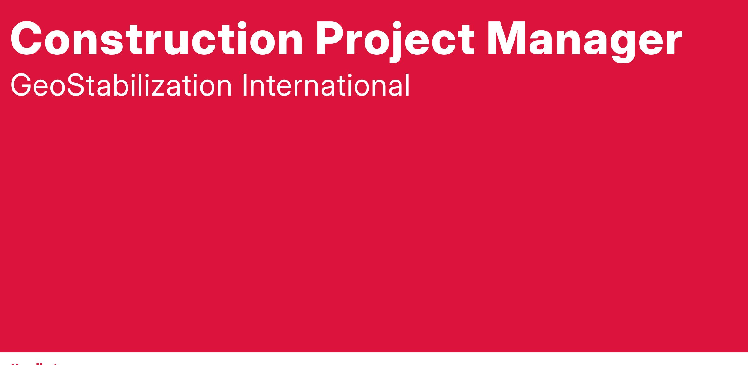 GeoStabilization International, LLC. is an equal opportunity employer, and all qualified applicants will receive consideration for employment without regard to race, color, religion, sex, sexual orientation, gender identity or expression, pregnancy, age, national origin, disability status, genetic information, protected veteran status, or any other characteristic protected by law.