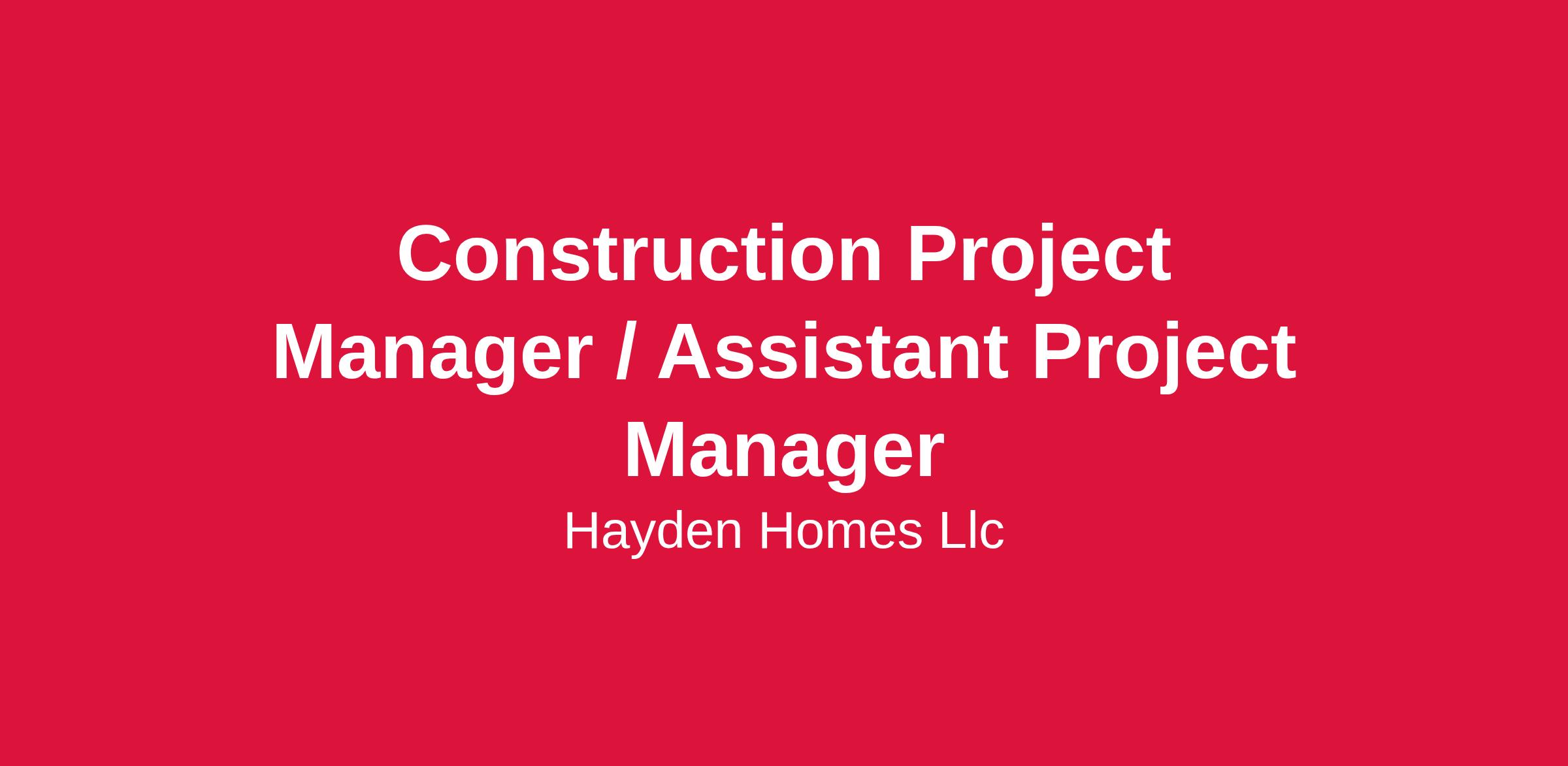 As a Hayden Homes Construction Project Manager / Assistant Project Manager, you will manage the construction of homes within assigned communities ensuring the highest standards of safety and quality as well as ensuring homes are delivered on schedule and within budget.