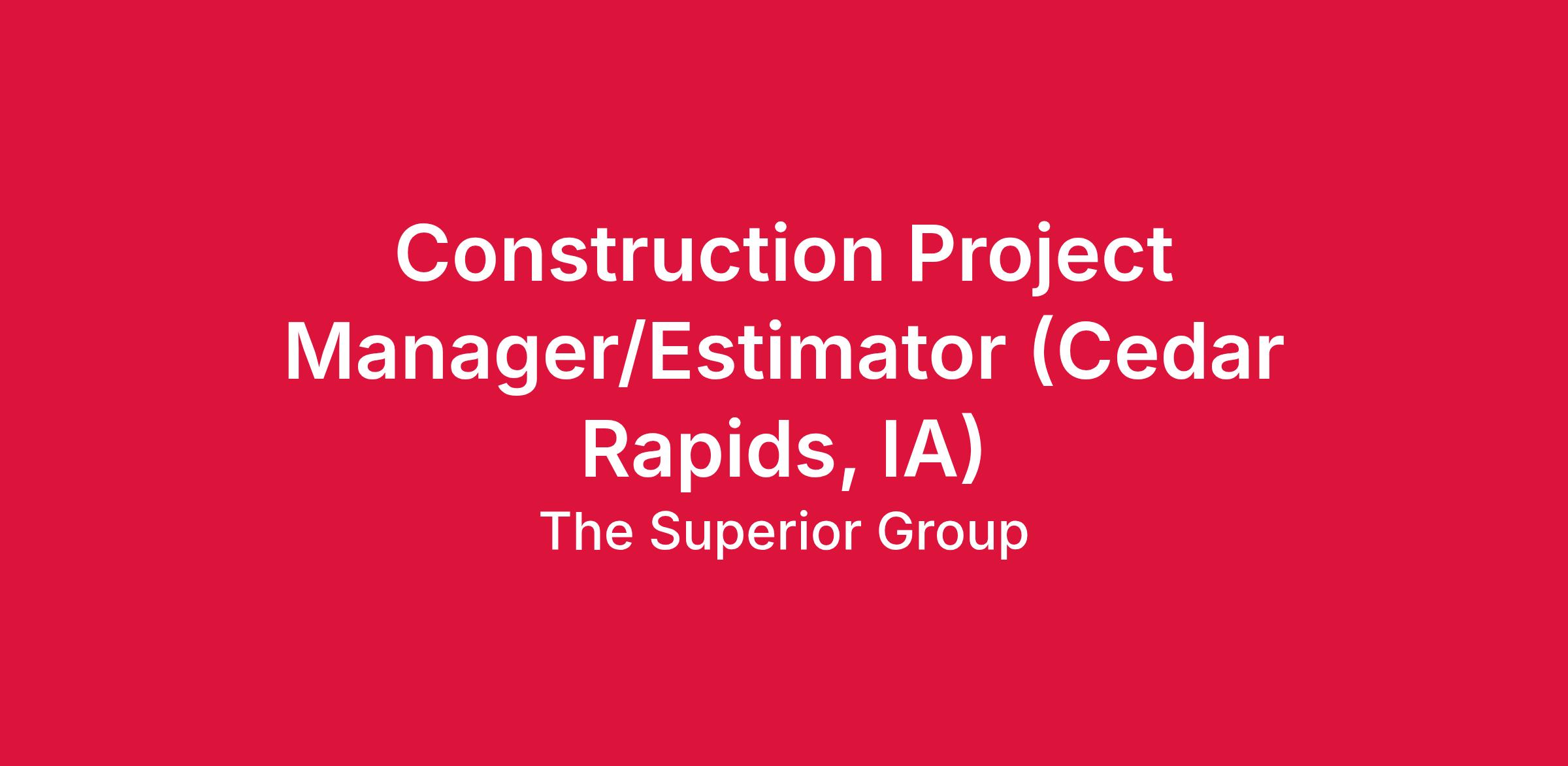 Superior and our tri-venture, CST is looking for a Project Manager/Estimator to help drive our electrical construction projects forward. The Project Manager is responsible for managing construction projects, scheduling resources, ensuring that budgets and timelines are met, and working closely with the Superintendent and Foremen to ensure the successful progress and completion of the project. This role is based on a jobsite in Cedar Rapids, Iowa, and will be a member of Superior's Project Operations team.