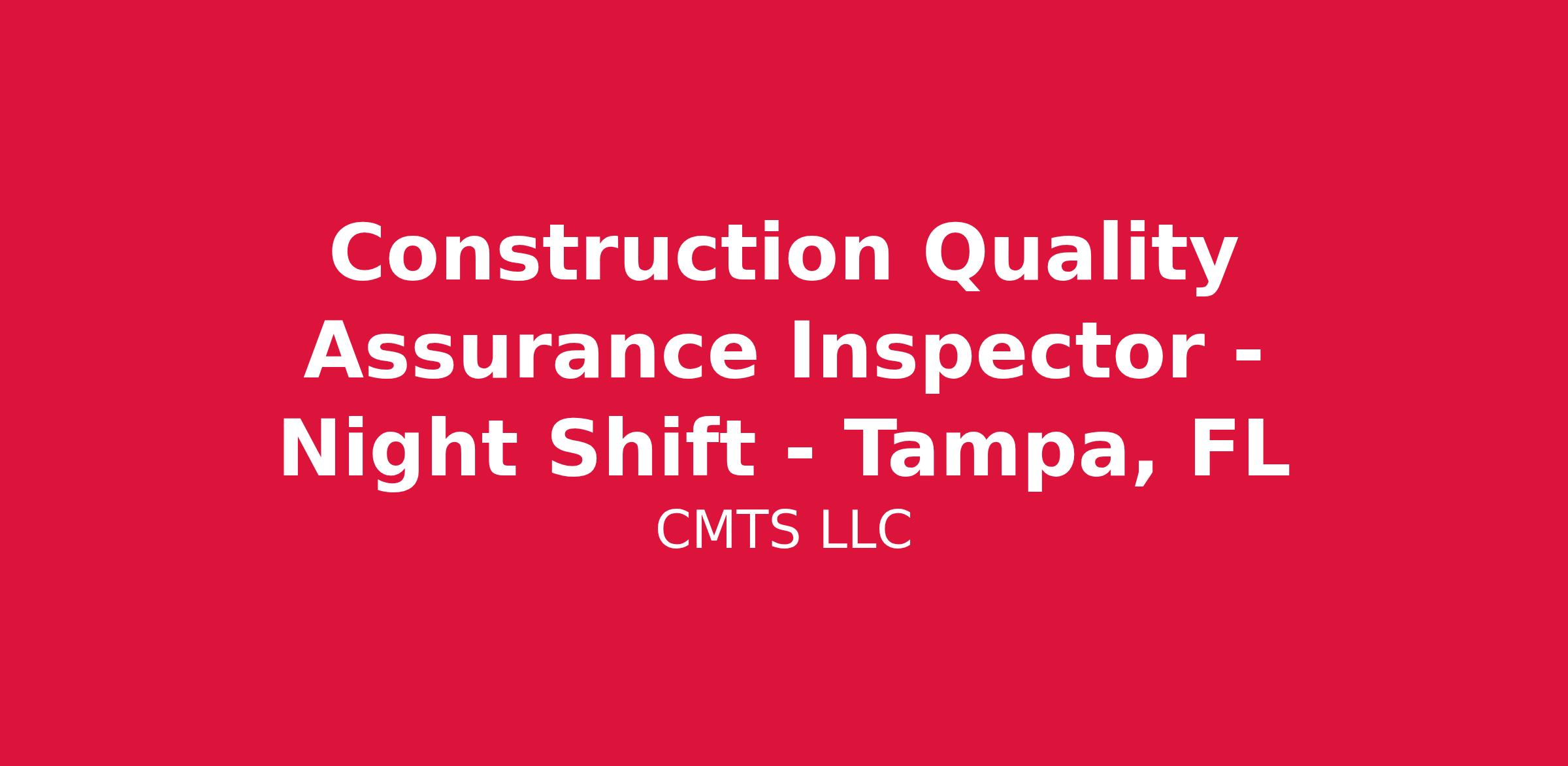 Construction Quality Assurance Inspector - Night Shift - Tampa, FL