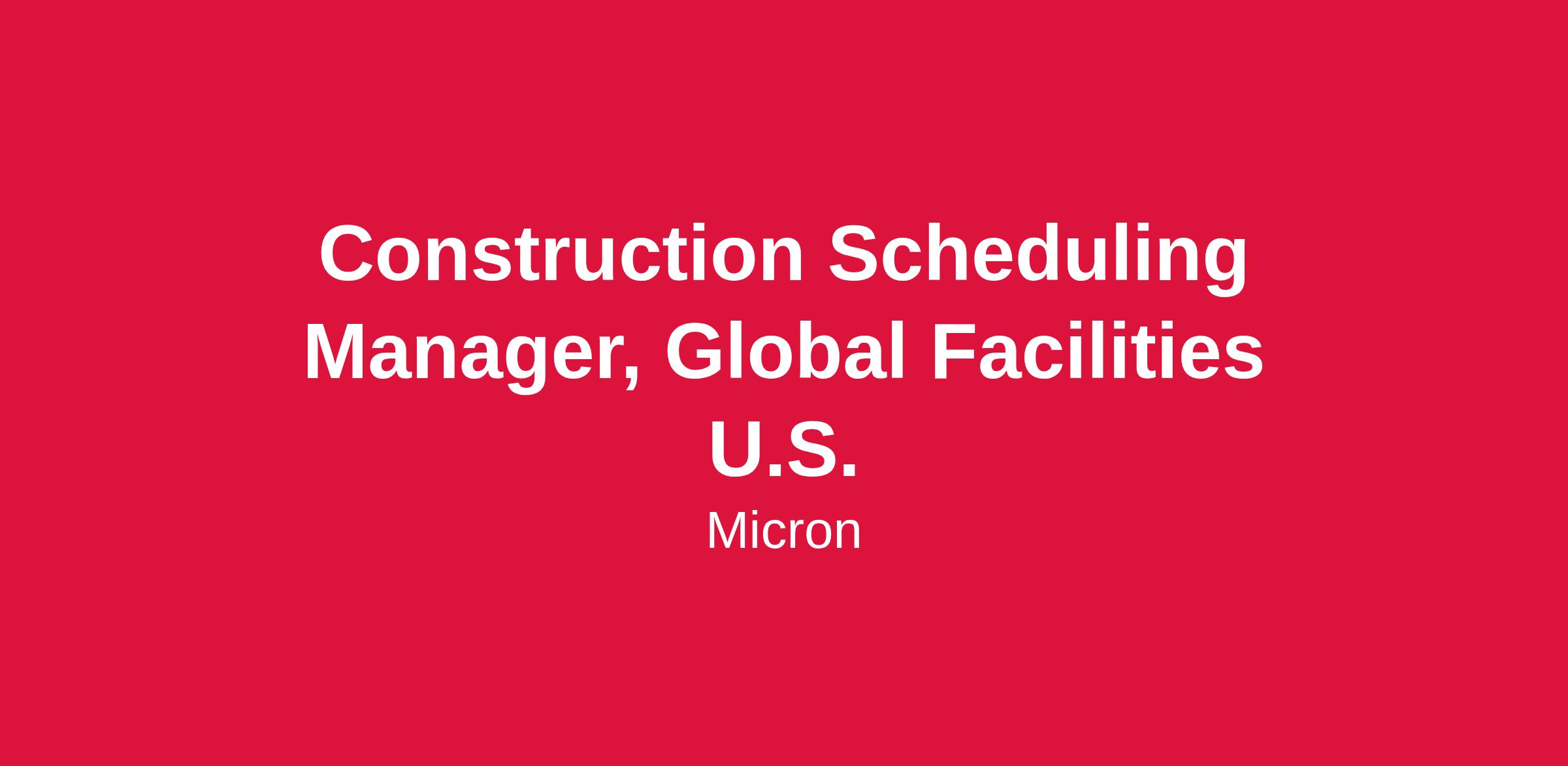 Lead Project Scheduling for Micron’s Global and Regional teams, ensuring timely, budget-conscious, and high-quality delivery of U.S. Greenfield FAB Build and Construction projects.