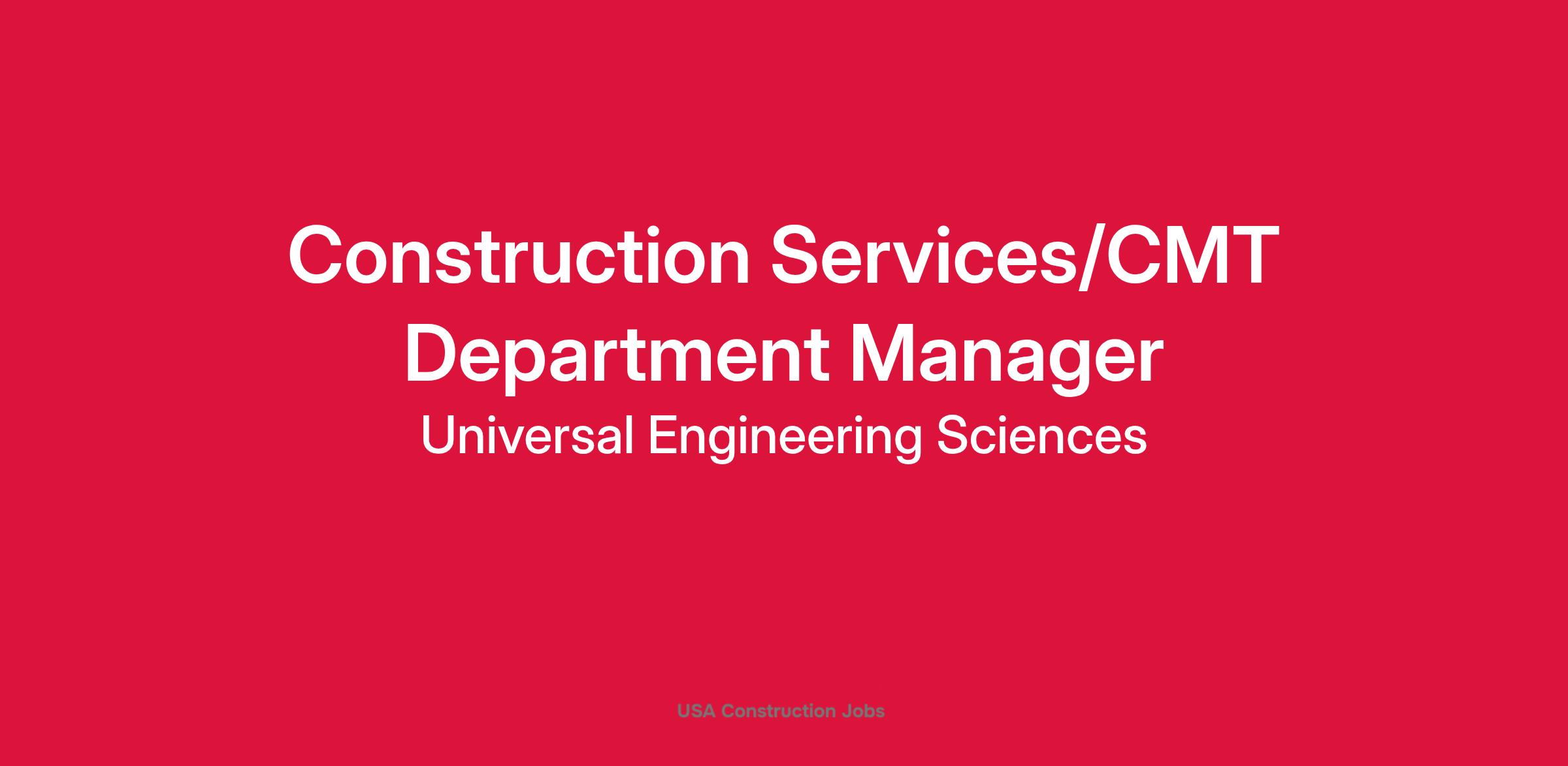 The role of the CMT Department Manager will provide project management and oversight of CMT projects as well as supervision of the CMT department.