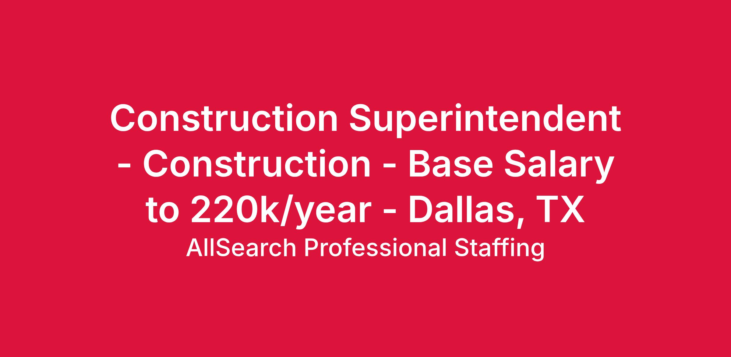 Construction Superintendent - Construction - Base Salary to 220k/year - Dallas, TX