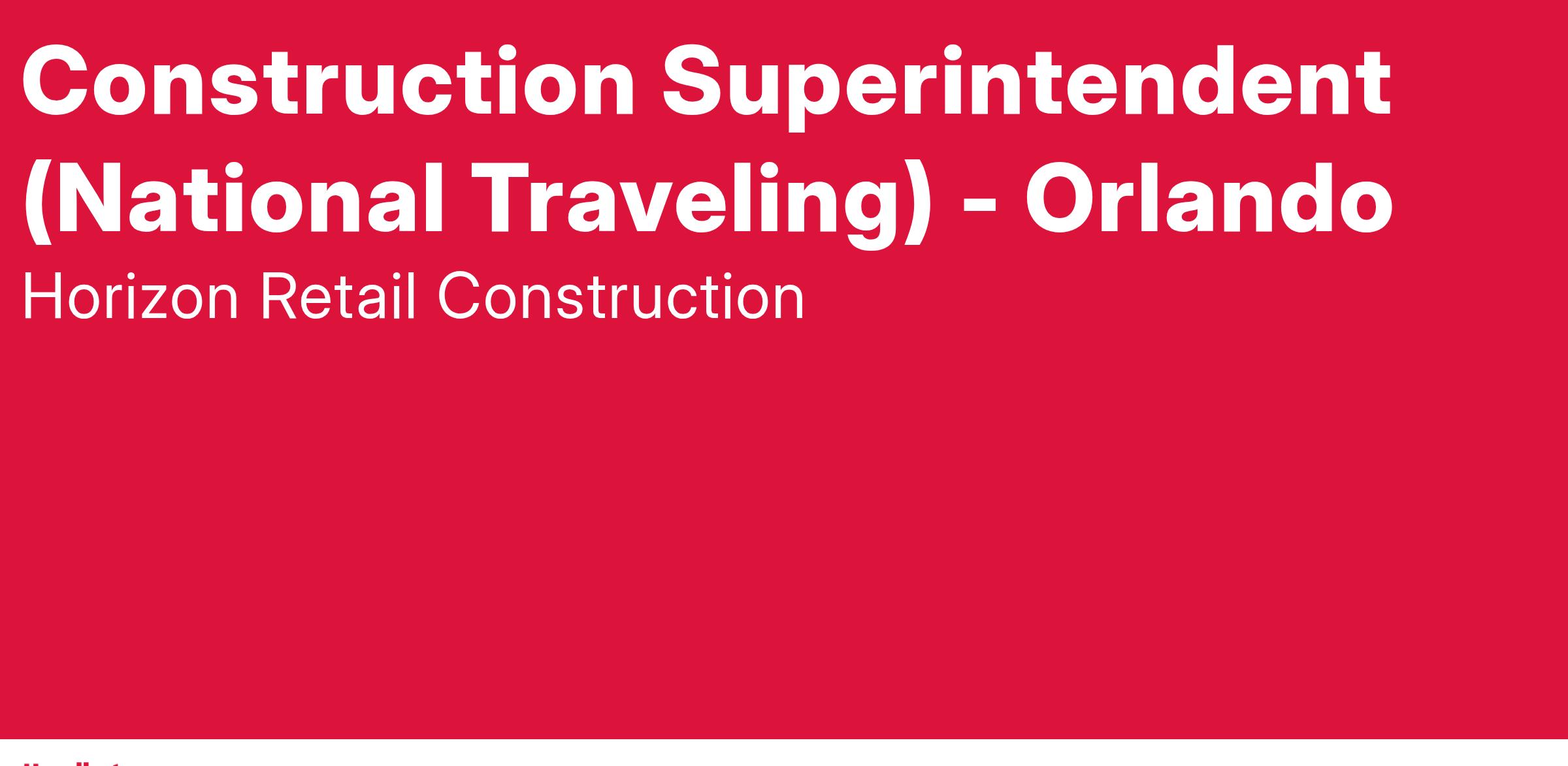 Horizon Retail Construction, an established national general contractor, has an immediate opening for a Construction Superintendent (National Traveling) at our Corporate Headquarters in Sturtevant, Wisconsin.