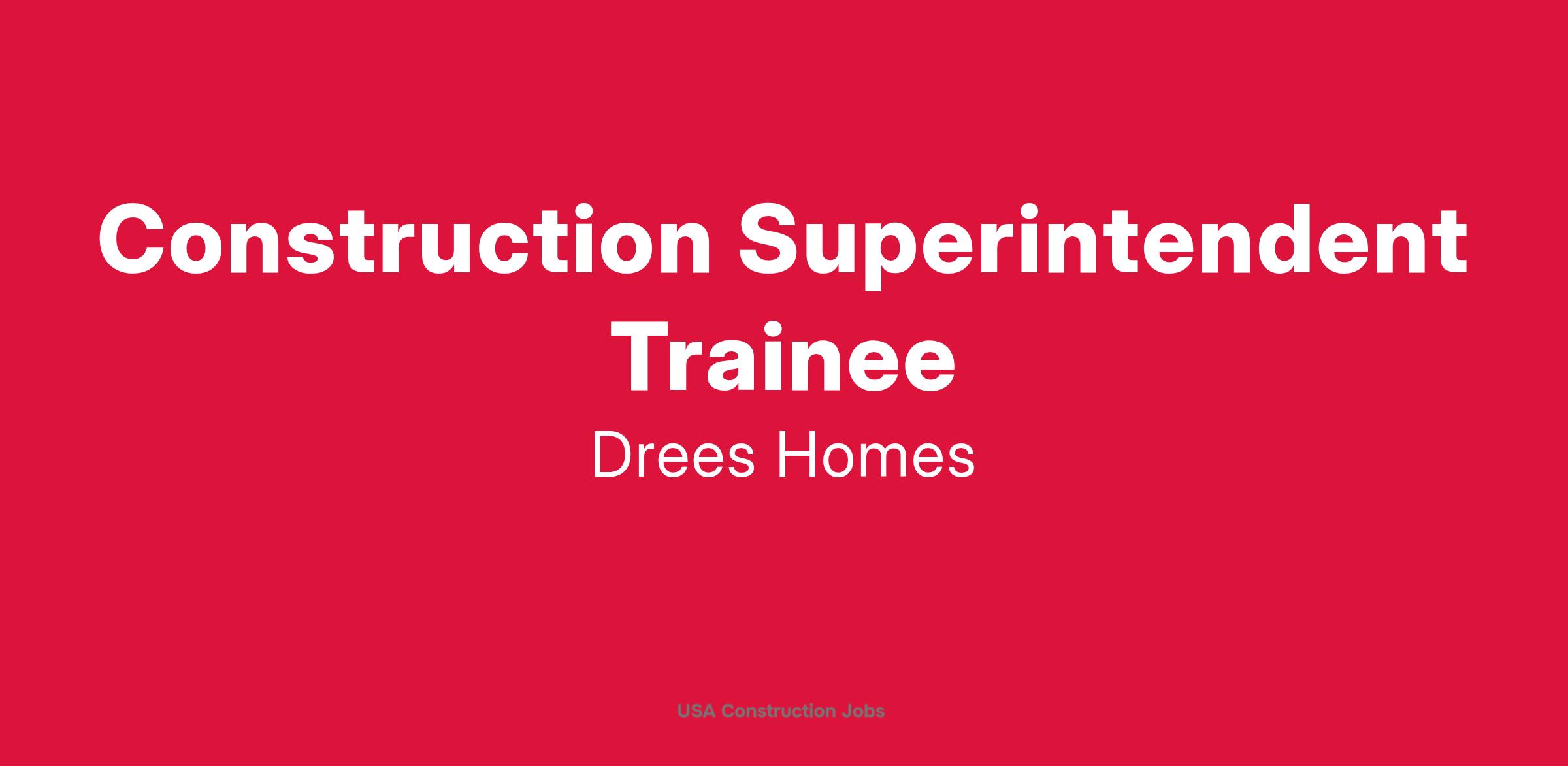Drees Homes is currently seeking a Construction Superintendent Trainee in our Dallas Division. If you are interested in building a career with an established leader in the homebuilding industry, this could be the opportunity you have been looking for.