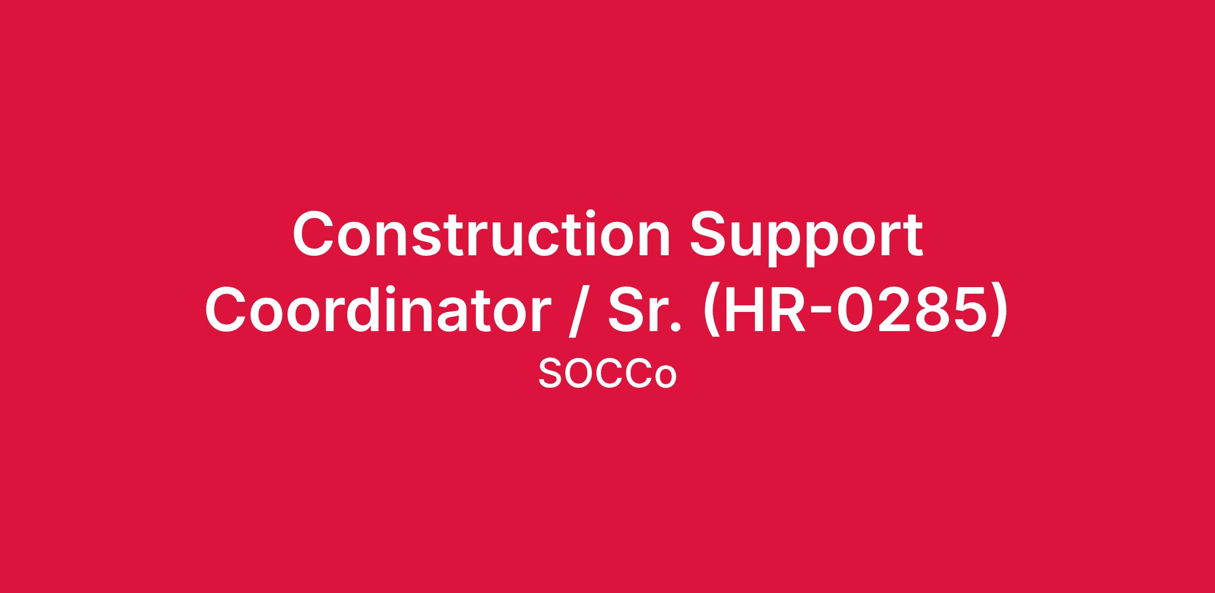 Construction Support Coordinator, Senior