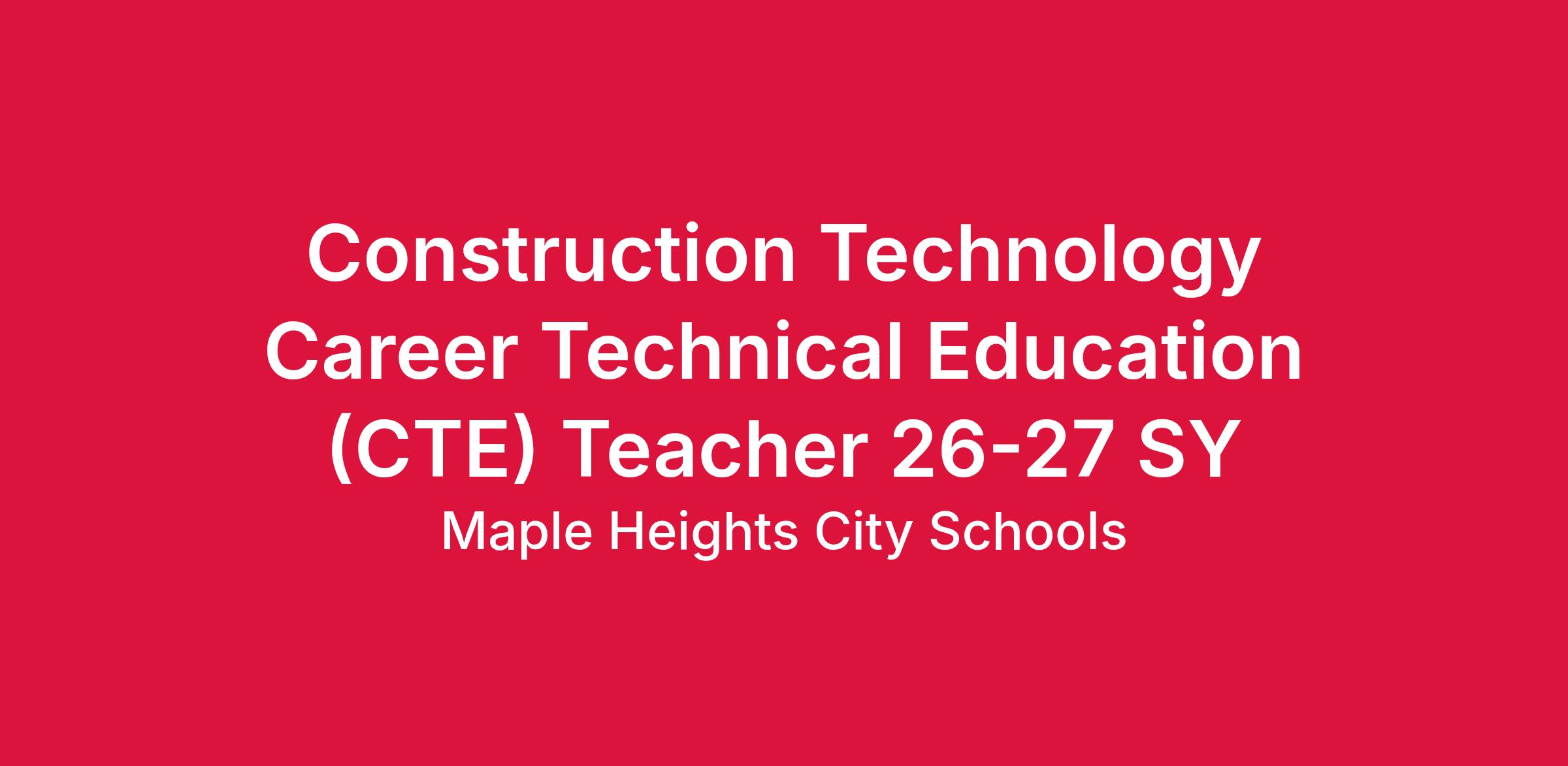Construction Technology Career Technical Education (CTE) Teacher 26-27 SY