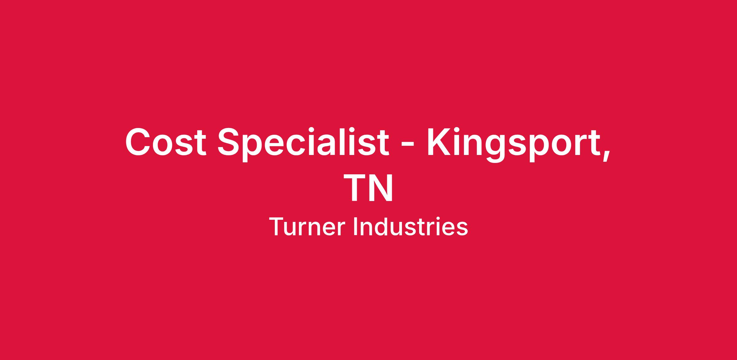 Turner Industries Group, LLC has an opening for a Cost Specialist to join our team in the Kingsport, TN area. This position supports the maintenance, capital project, and/or the turnaround team with a focus on quantitative analysis of cost and schedule to provide management with the data necessary to make sound business decisions. The Cost Specialist also ensures the project's budget objectives are achieved.