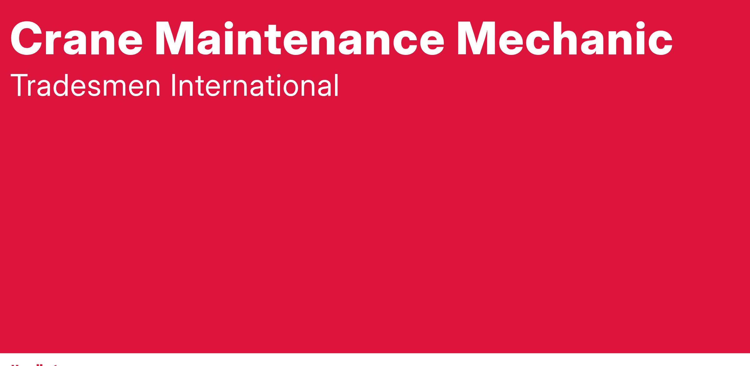 Tradesmen International is immediately hiring skilled Crane Minatenenace Mechanics for projects located in and around Hurst, TX. This is a first shift opportunity with a pay rate of up to $27/hour based on experience & skill level. If you are a Crane Maintenance Mechanic and want to work alongside other proven craftsmen who emphasize safety, productivity and superior craftsmanship, this is your chance to advance your career!