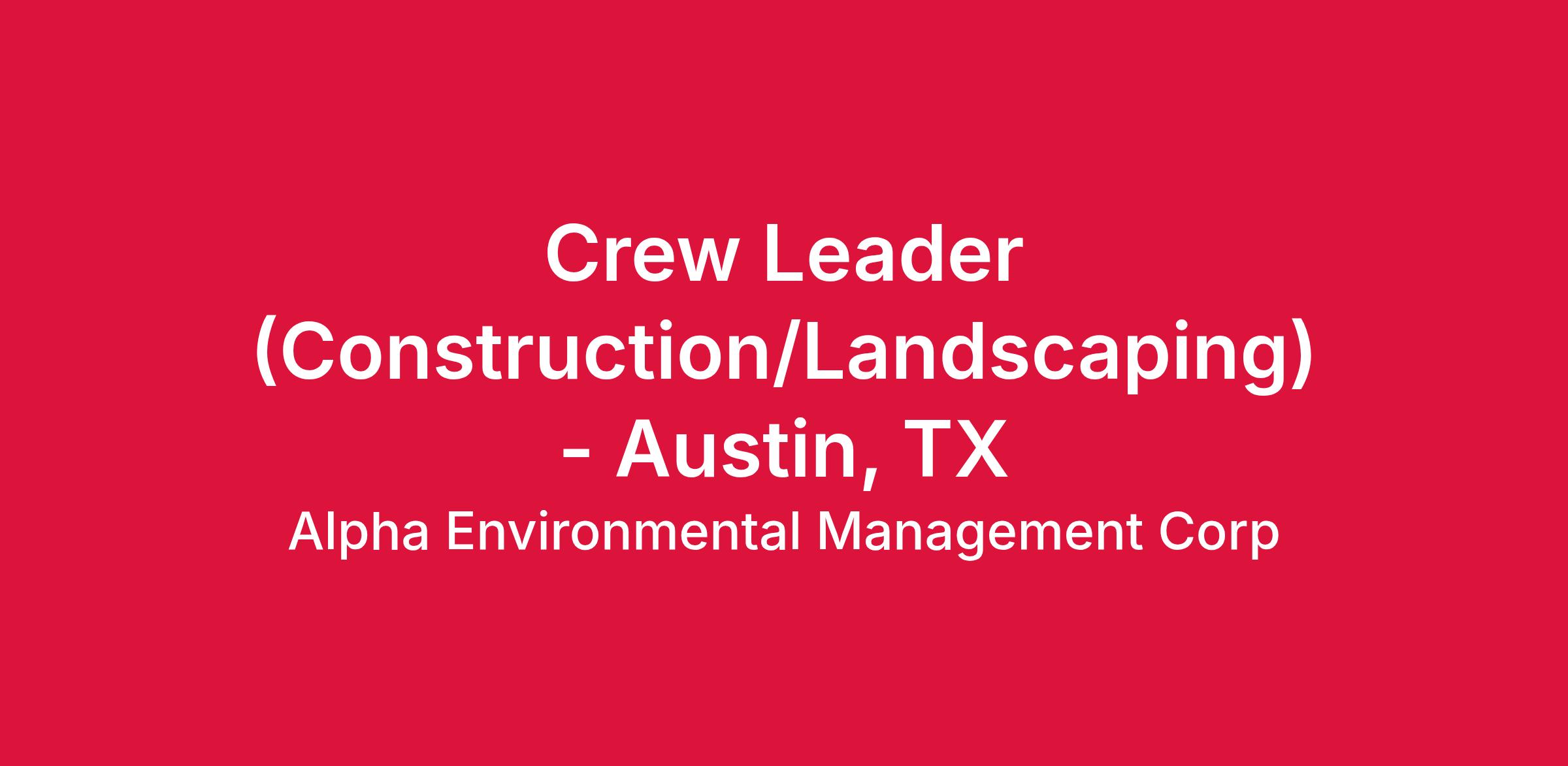 Crew Leader (Construction/Landscaping) - Austin, TX