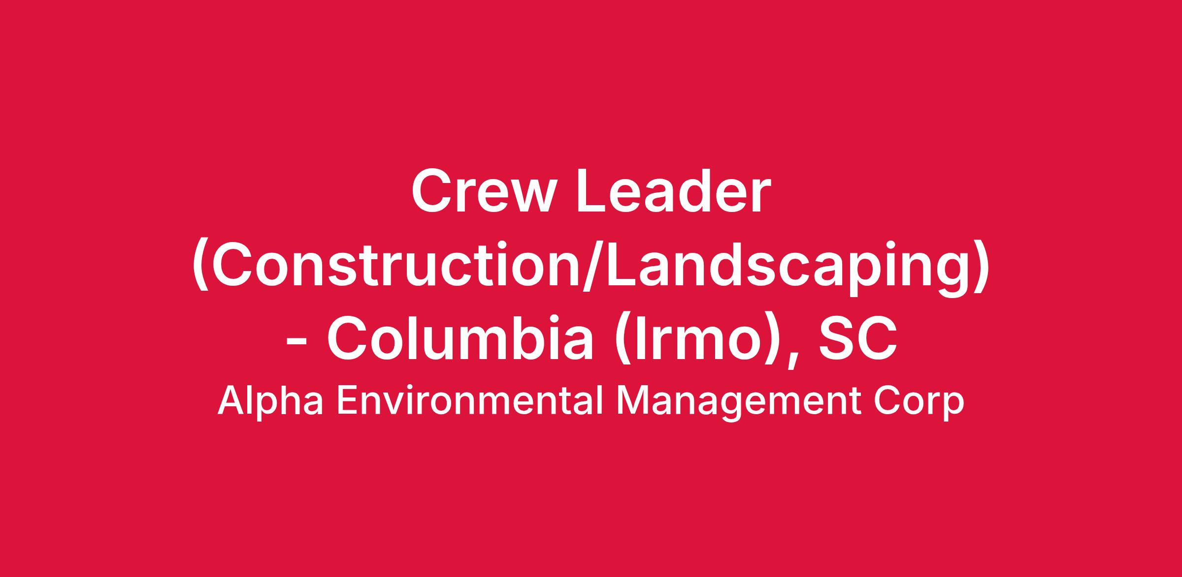 Crew Leader (Construction/Landscaping) - Columbia (Irmo), SC