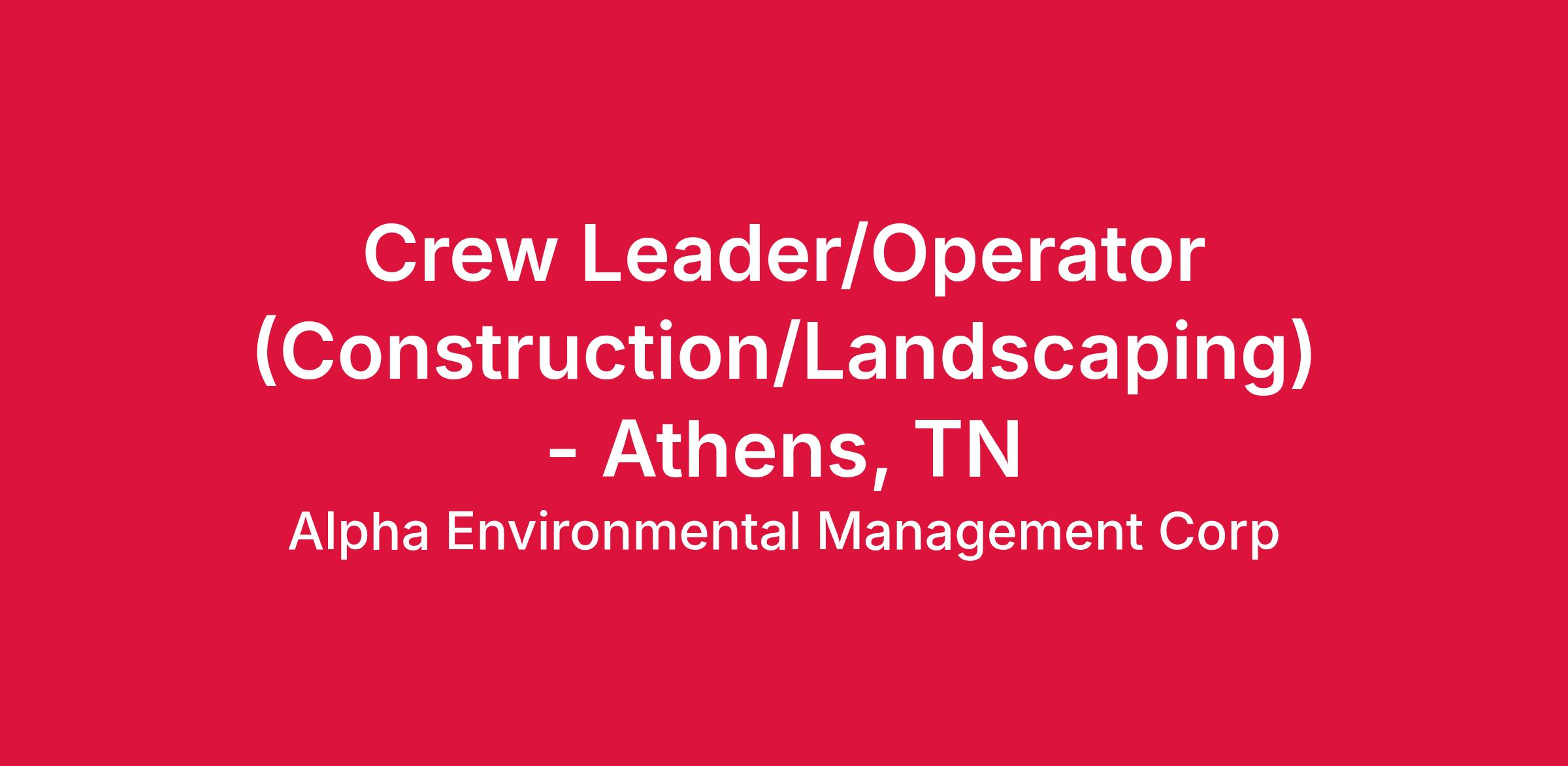 Full-Time Crew Leader/Operator (Construction/Landscaping)