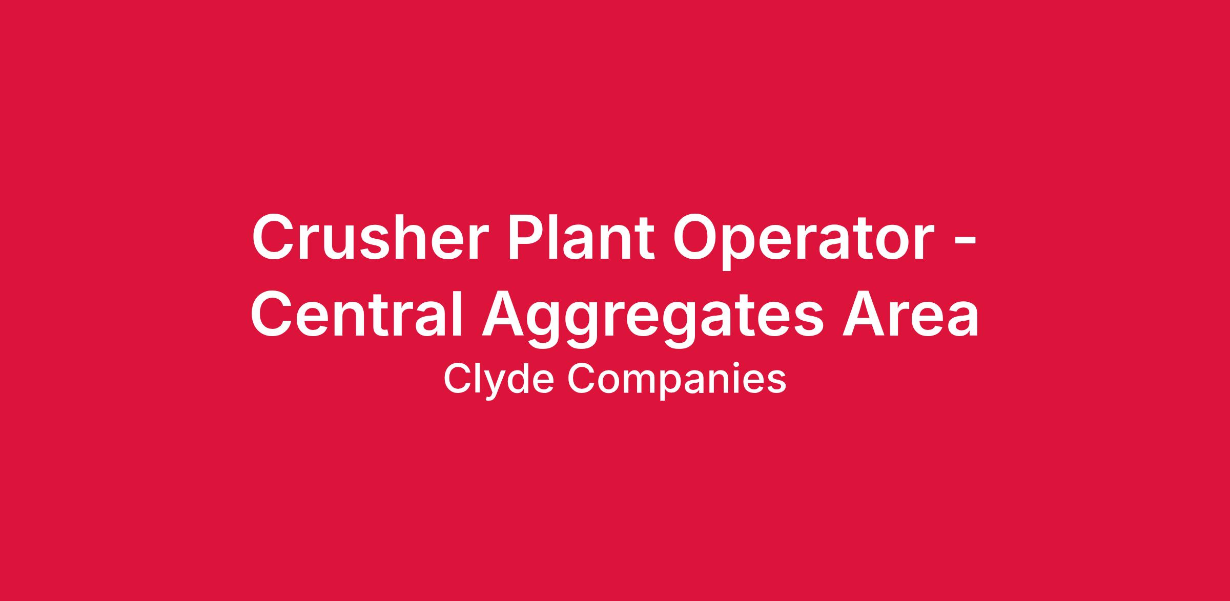 Job Title: Crusher Plant Operator