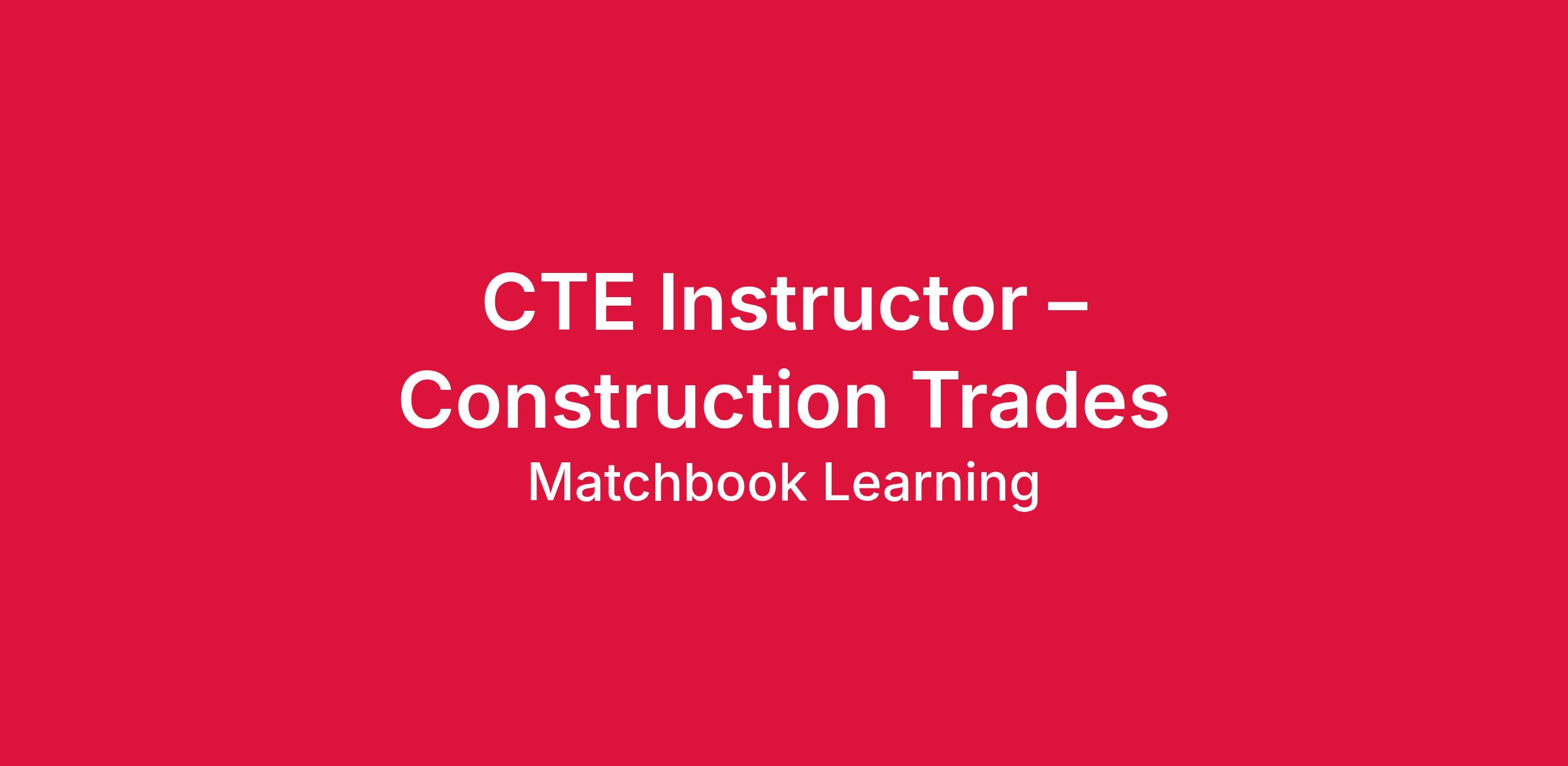 We are currently seeking a CTE Instructor – Construction Trades to join our CTE Team at Matchbook Learning at The Match High School and Career Center for the 2026-2027 school year.