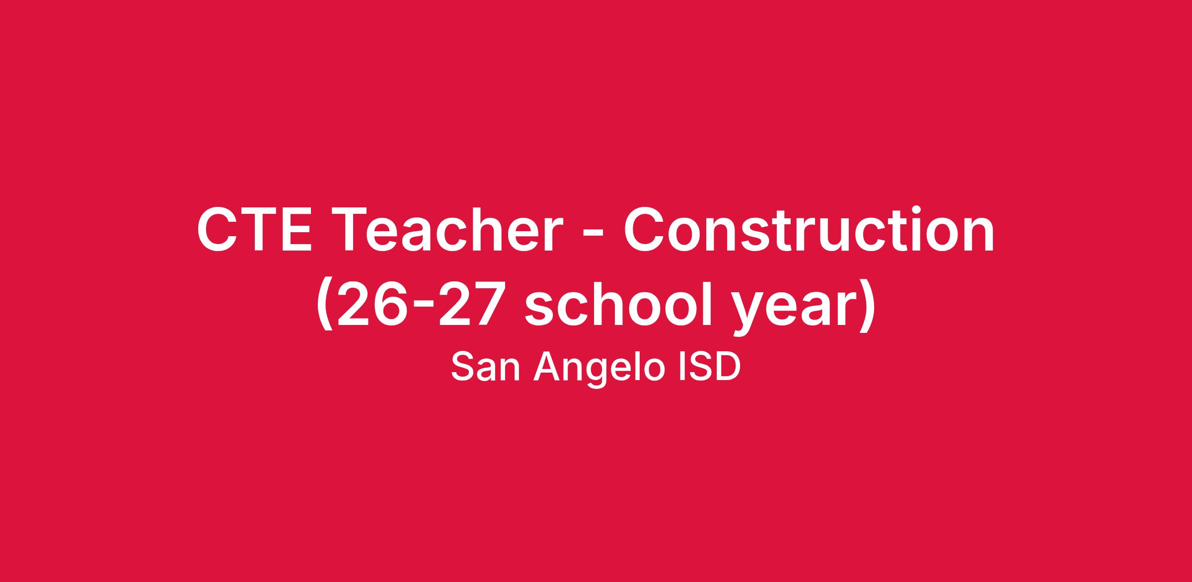 POSITION TITLE: CTE - Construction Teacher