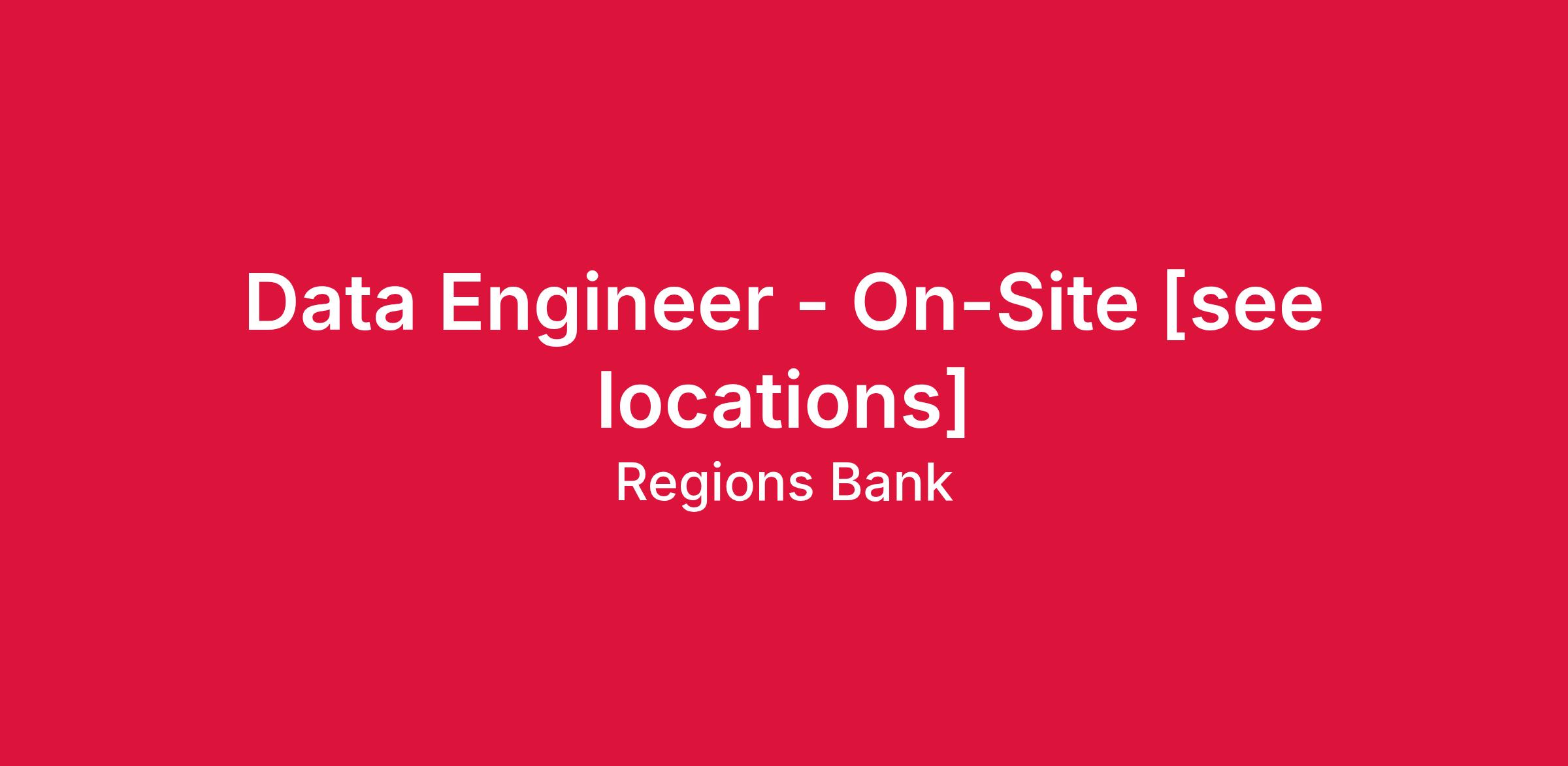 This position is intended to be onsite, now or in the near future. Associates will have regular work hours, including full days in the office three or more days a week. The manager will set the work schedule for this position, including in-office expectations. Regions will not provide relocation assistance for this position, and relocation would be at your expense. This position must be within a reasonable driving distance to a Branch, Consumer Operations, or Professional Office Building with the primary locations being for Birmingham, AL, Atlanta, GA or Charlotte, NC. Exceptions to the geographic location requirement may be made for current Regions associates who work remotely.