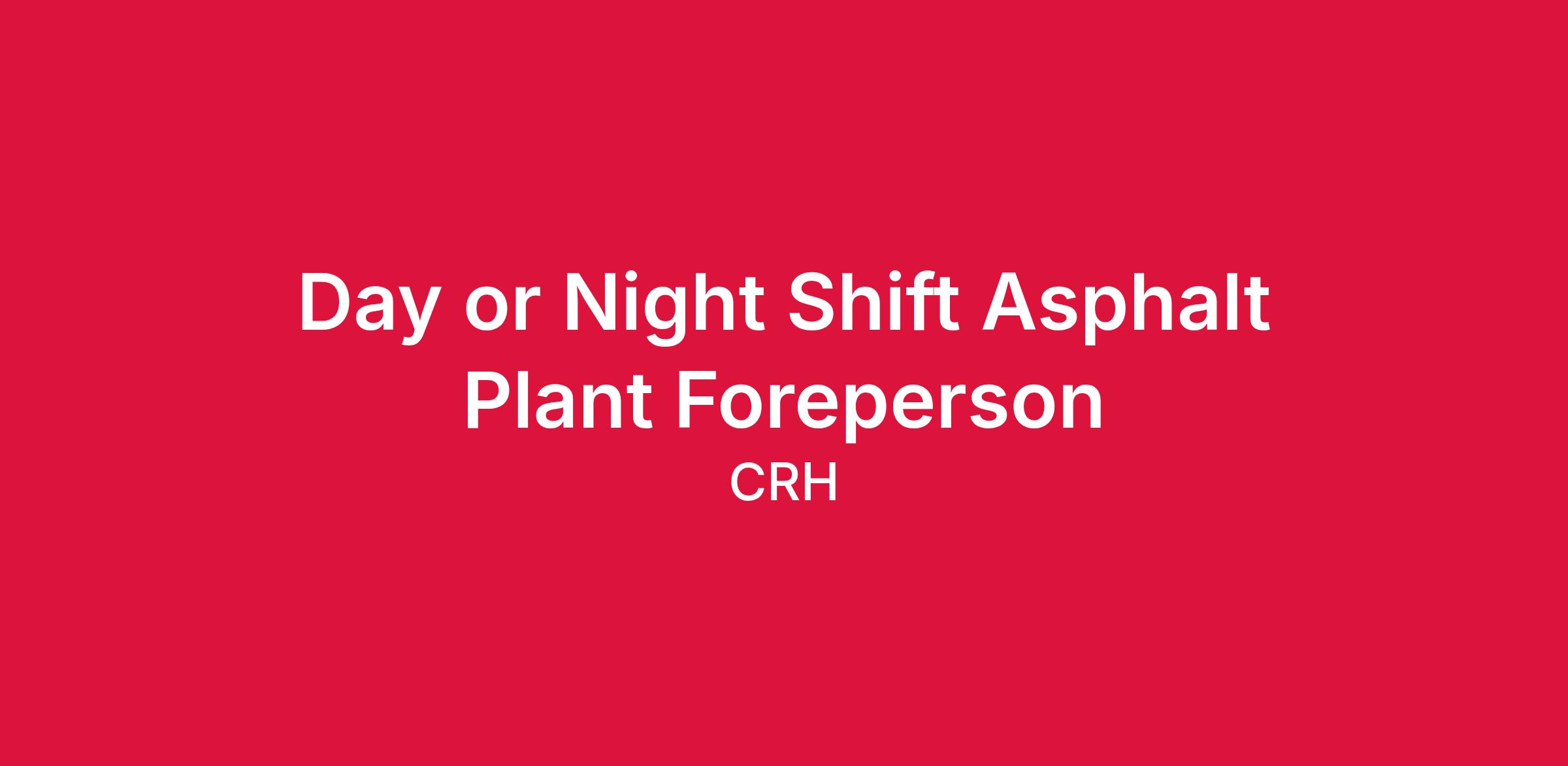 The Asphalt Plant Foreperson is responsible for the daily operation of the HMA batch or drum plant. Individual shall interact with customers, paving fore people, aggregate and AC drivers. The Foreperson shall be responsible for the safe and efficient operation of the HMA operation on a daily basis. Individual will also perform repair and maintenance duties that include cutting, welding and metal fabrication.