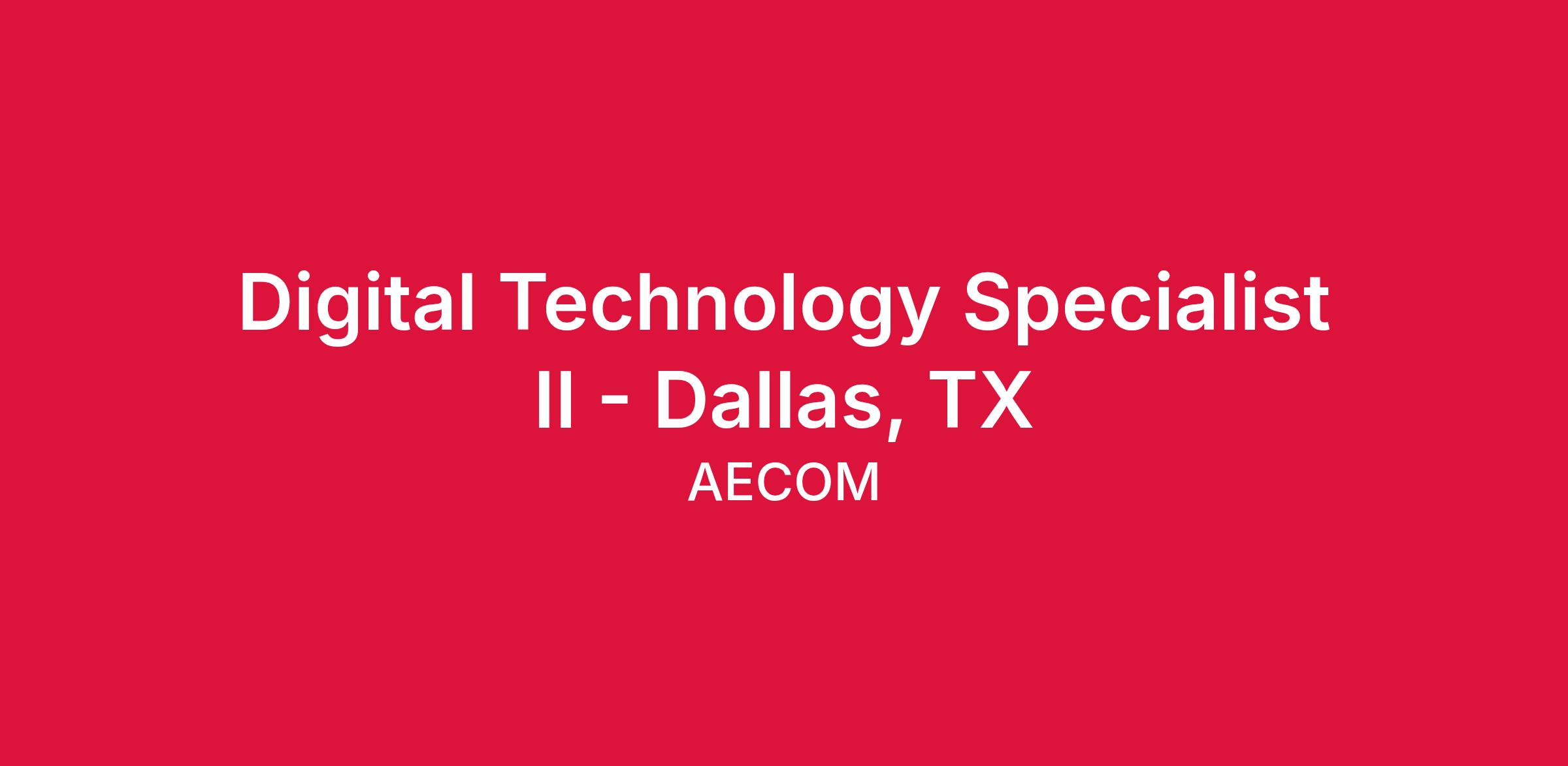 AECOM Hunt has an exciting opportunity for an experienced Digital Technology Specialist to assist with our new and upcoming construction management projects in Dallas, TX.