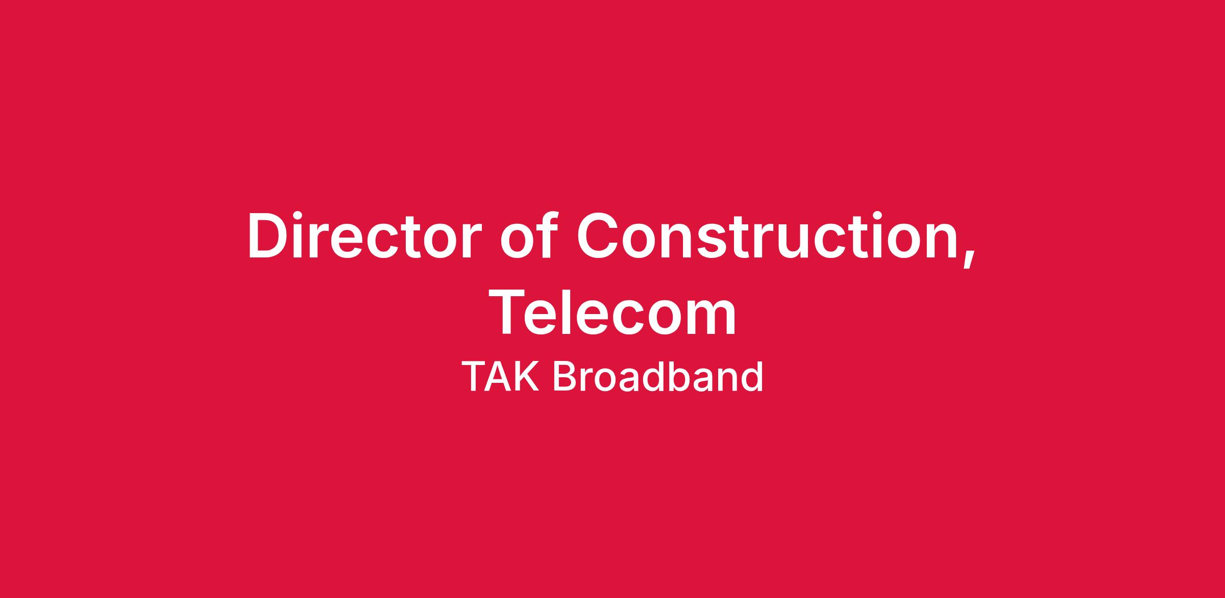 TAK Broadband is a leading end-to-end U.S. fiber broadband network construction contractor operating in 42 states. It builds more than just networks; it connects communities to new valuable digital opportunities. TAK offers comprehensive service solutions, from construction to drops to fulfillment. TAKβs ecosystem of partners allows it to successfully complete every project starting from the first point of conception. This includes engineering teams, distributors, and more than 100 qualified construction crews with extensive experience across all ISP types and markets; over 300 experienced bury drop crews; and more than 700 professional technicians.