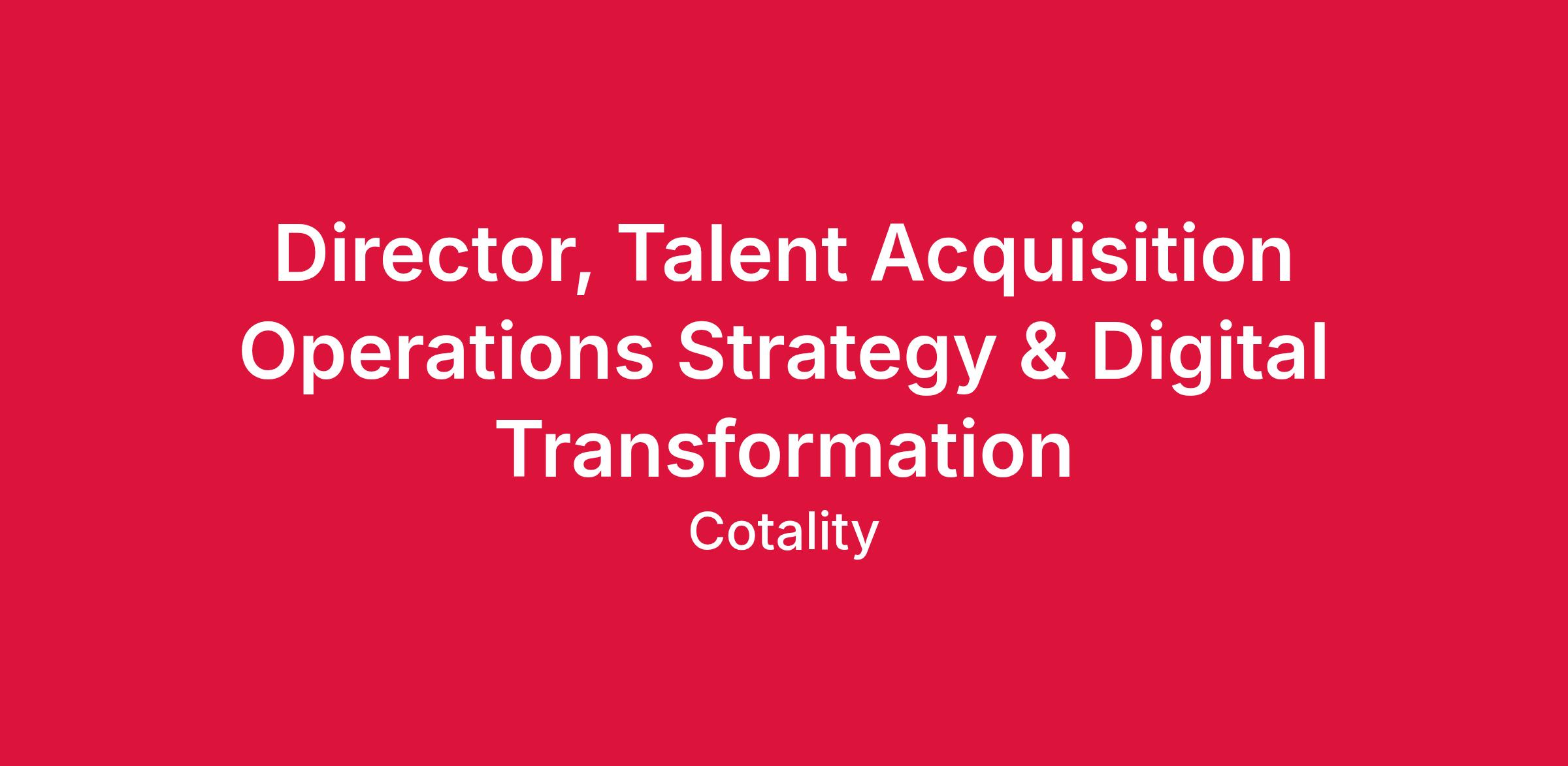 Are you a visionary leader who views Talent Acquisition as a high-tech, high-touch engine of growth? At Cotality, we aren't just filling roles; we are transforming our business. We need a strategic global operations expert to lead our TA Operations—someone who can dismantle inefficient legacy processes and replace them with a seamless, AI-accelerated candidate journey. If you have a "Lean mindset," a passion for Workday optimization, and the courage to challenge the status quo, you belong here.