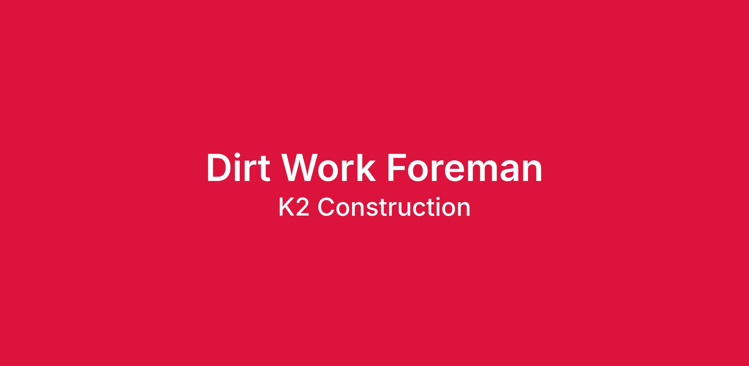 The foreman is responsible for providing direct in-field supervision of a dirt crew working on all phases of construction and all other related work as required. The foreman is responsible for maintaining and improving upon the efficiency and effectiveness of all areas under his/her direction and control. The foreman serves as the front-line Safety Officer for the site/project and is directly responsible for the safety of his/her dirt crew. In this role the foreman will direct the crew in clearing and grading, grading blue-topping of dirt, roadways and site preparation including stabilization of soils, base, finishing out/ dressing up job sites.
