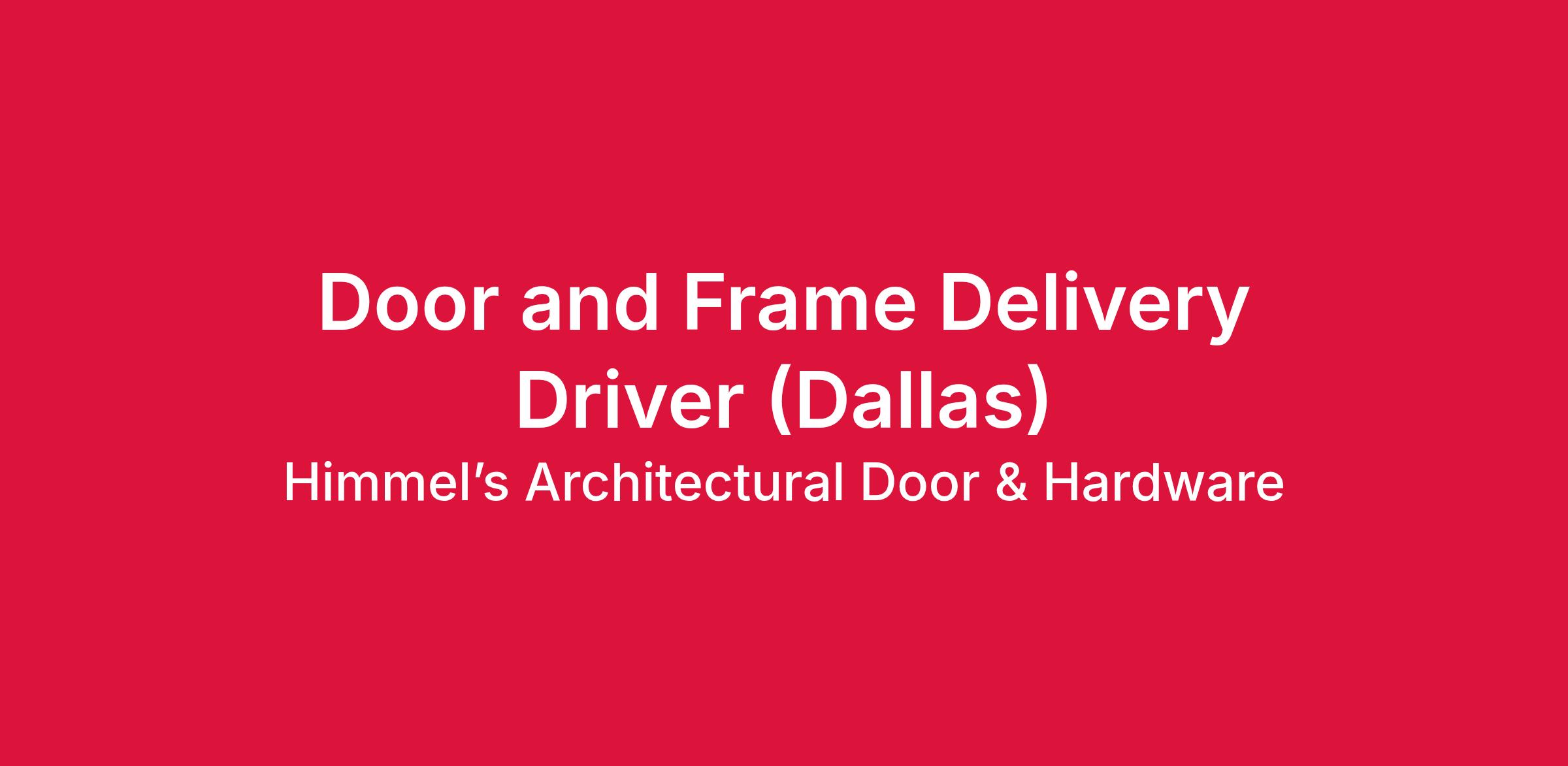 For over 40 years, Himmel’s Architectural Door and Hardware has provided quality products and services in the commercial door and architectural specialties industry. Himmel’s is a growing organization with locations in New Orleans, Prairieville, Houston, Dallas, and Nashville. We pride ourselves as the door opening experts, not simply a construction material supplier. Our family owned and operated company is currently seeking a Door and Frame Delivery Driver to join our team at our Dallas Location!
