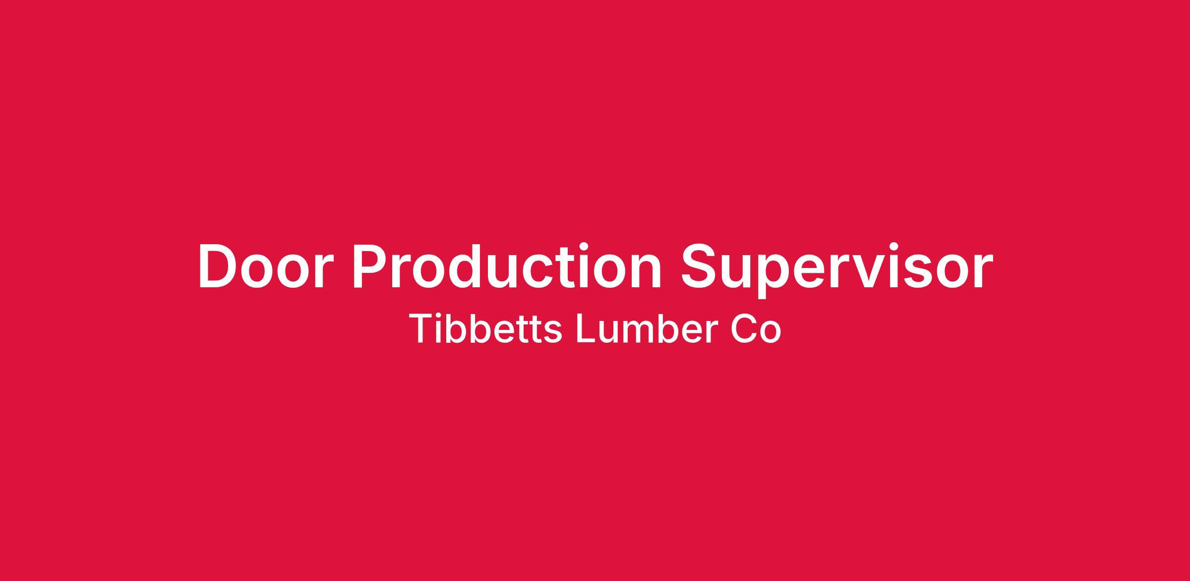 Tibbetts Lumber Co. LLC, a growing Lumber and Building Materials company, is seeking Door Production Supervisor.