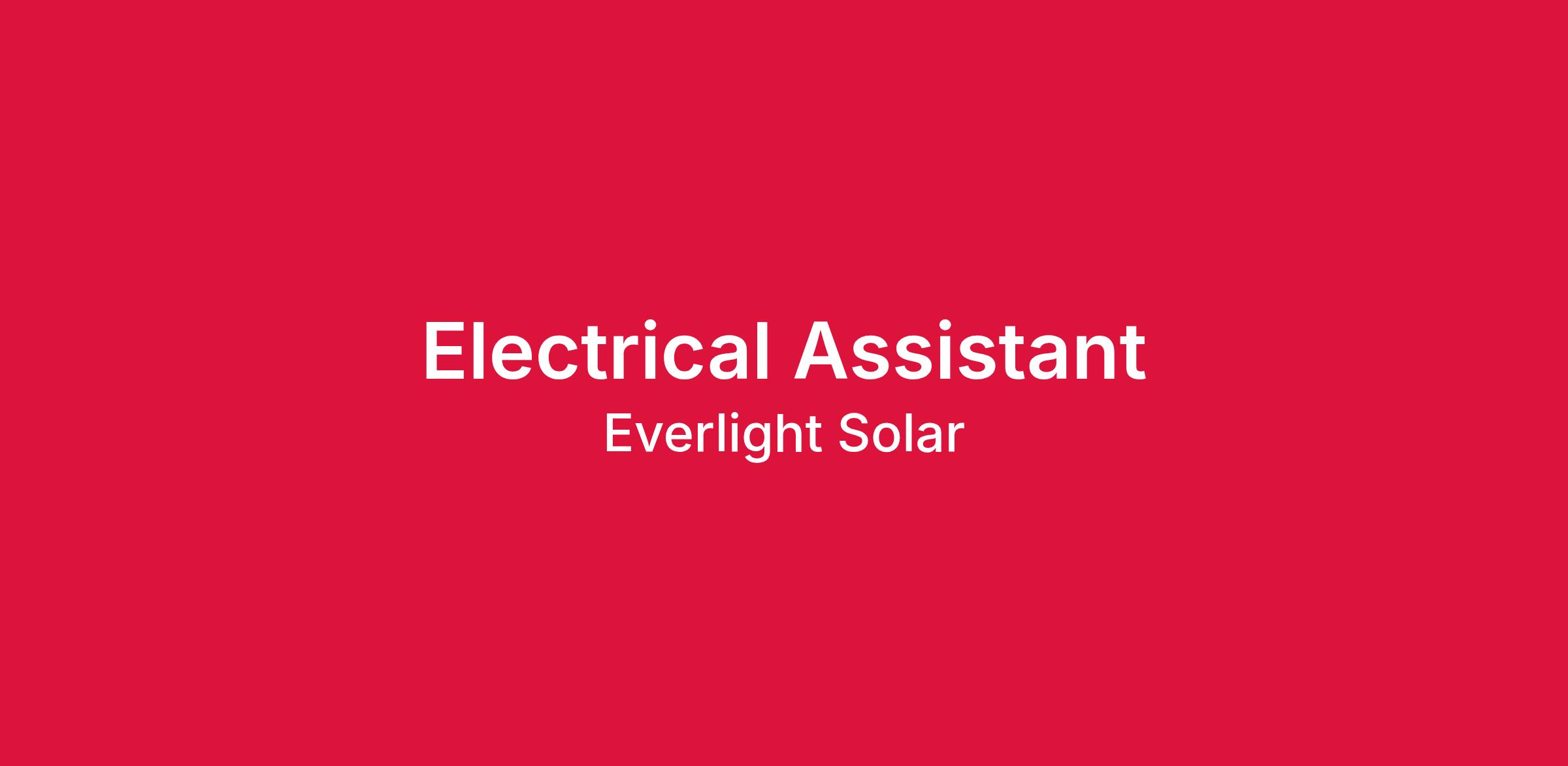 Everlight Solar is seeking a hardworking individual to fill the role of Electrical Assistant. We are looking for a dependable individual that is passionate about developing lifelong skills and is seeking an entry-level position into the solar industry.