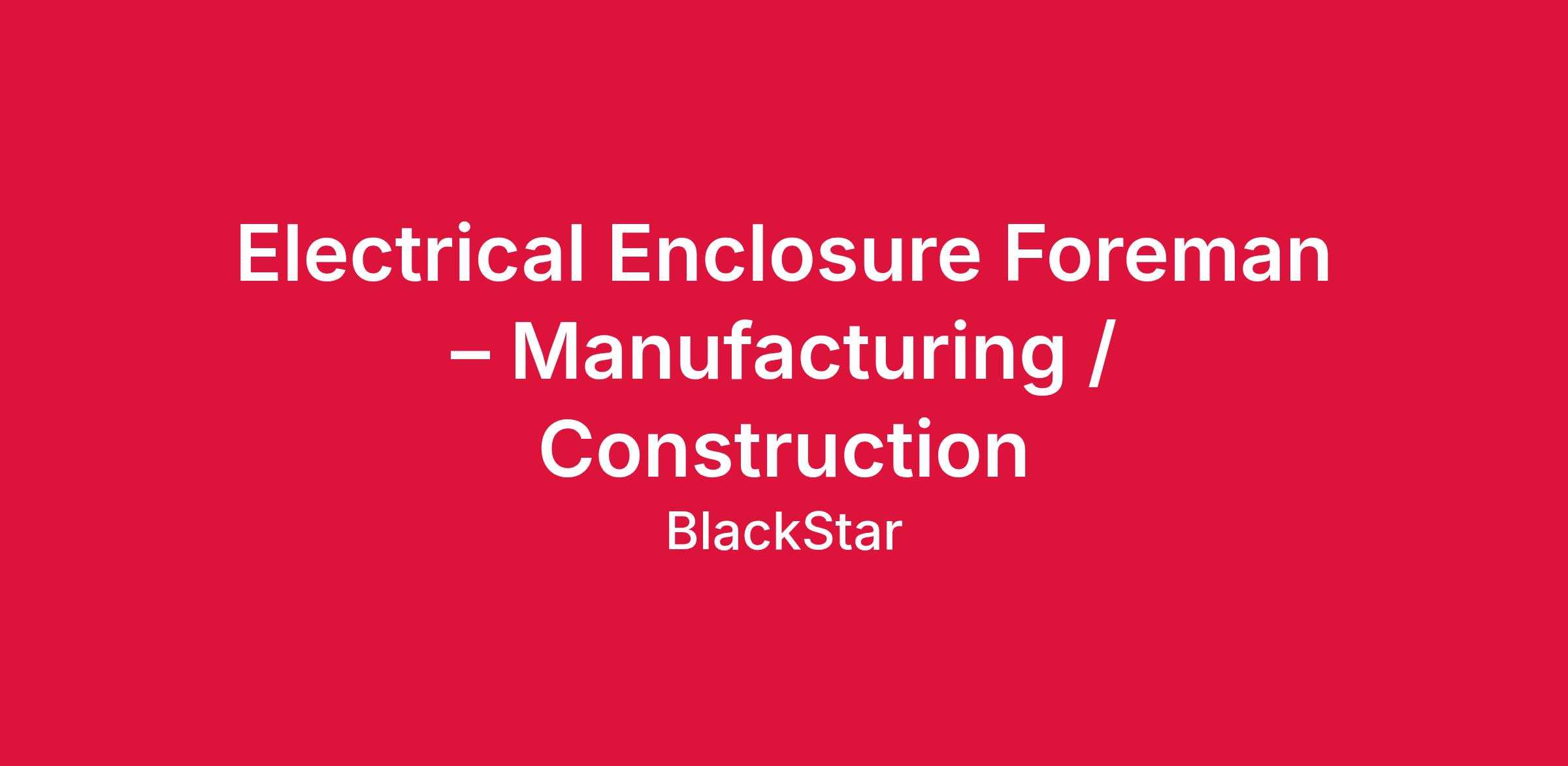 Enclosure Foreman – Manufacturing / Construction | Iowa Electrical License