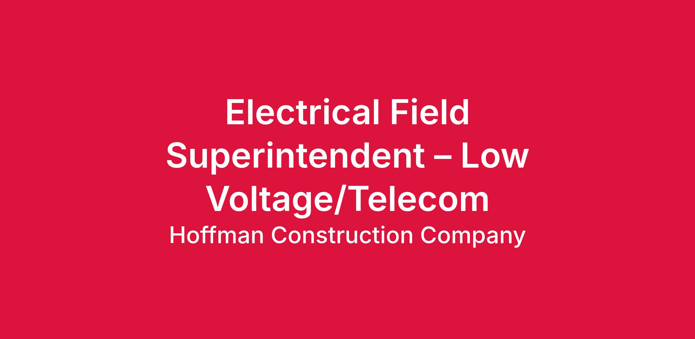 Job Summary: The Low Voltage Electrical Field Superintendent will work within the Construction department and will report to the Electrical Project Superintendent and Electrical Construction Manager. They will work closely with other Superintendents and subcontractors. The Low Voltage Electrical Field Superintendent will be responsible for managing projects from start to finish, ensuring supervision of the low voltage electrical project team, scheduling, quality, submitting RFI’s, providing a safe work environment, and overseeing the QA/QC programs. The Low Voltage Electrical Field Superintendent will supervise multiple electrical subcontractors performing extensive fast-tracked scope on multiple large hi-tech buildings. This position will be fully at the project site.
