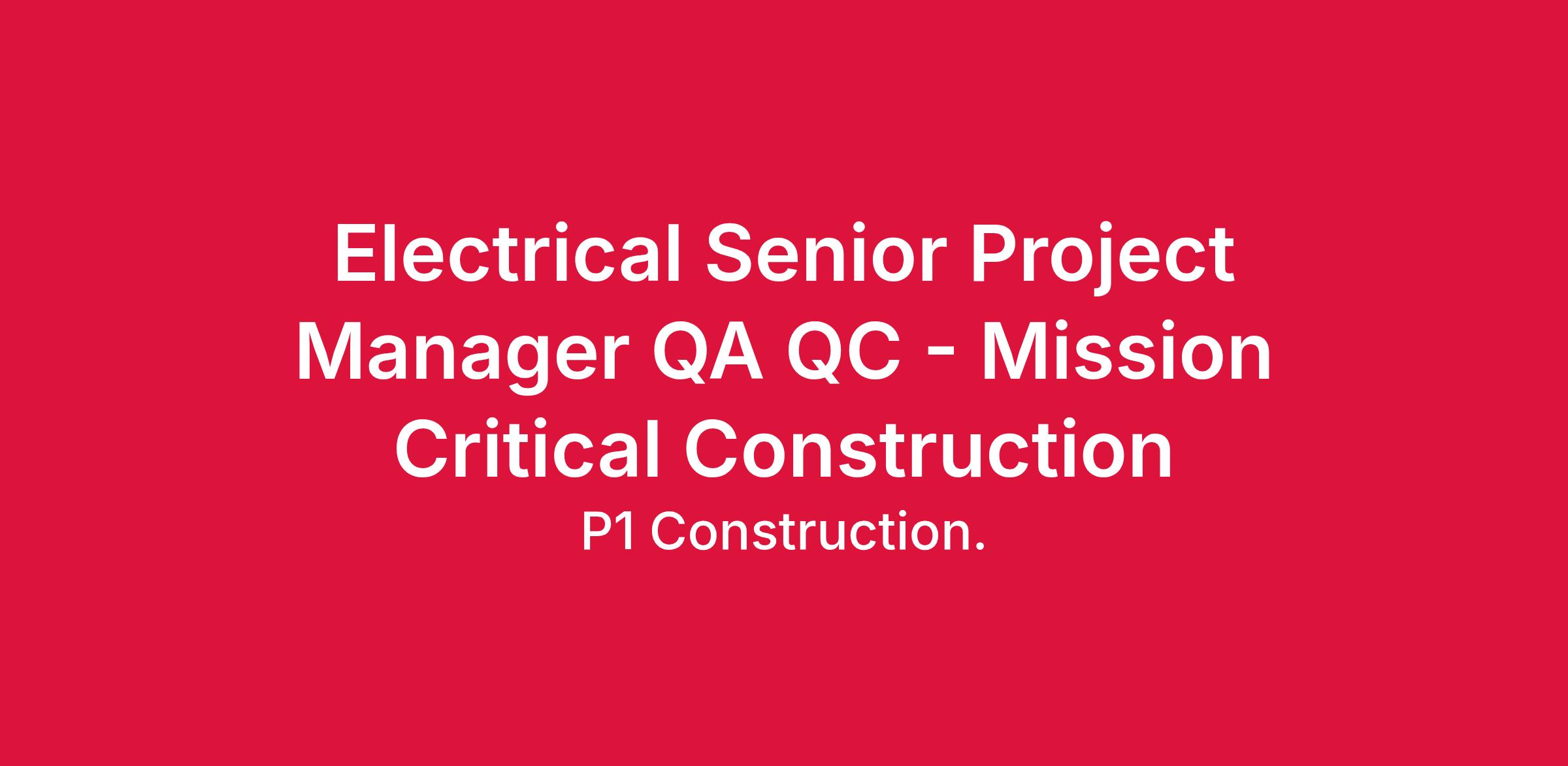 P1 Construction is seeking a QA QC Electrical Senior Project Manager for our Advanced Technologies/Mission Critical construction group for a jobsite in the Tulsa, Oklahoma area. This is a jobsite-based position supported by our Midwest corporate office in Lenexa, KS. Future work would be on jobsites primarily in the Midwest.