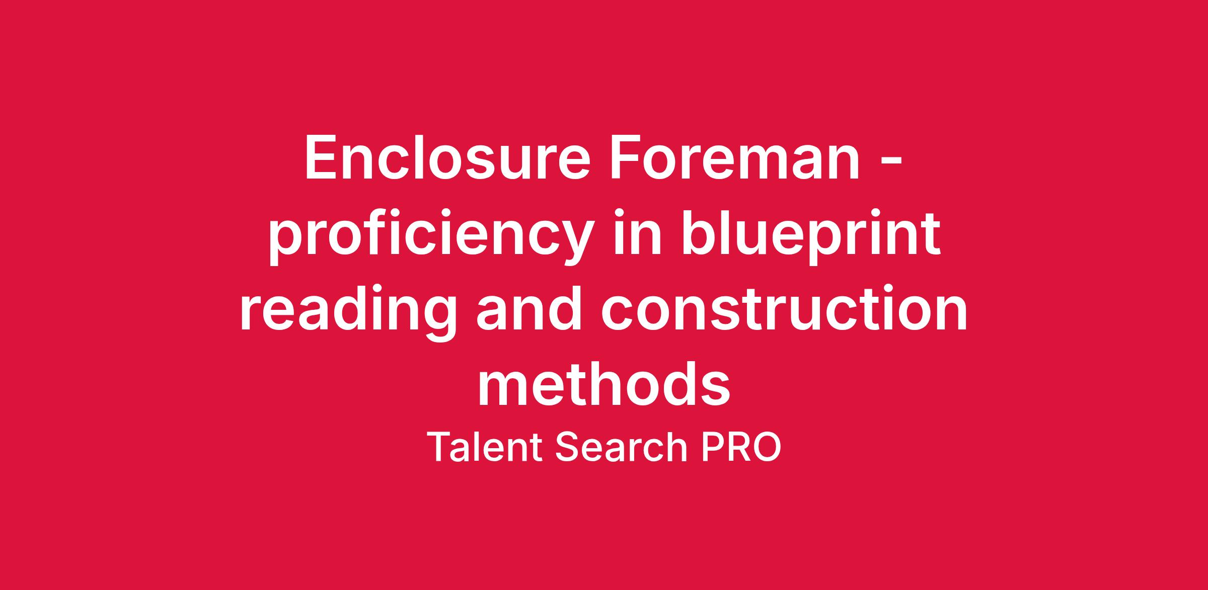 The Enclosure Foreman will be responsible for overseeing the completion of the projects in the Enclosure Department. This oversight includes ensuring employee safety and productivity while demonstrating strong leadership skills. May travel off-site to conduct services.