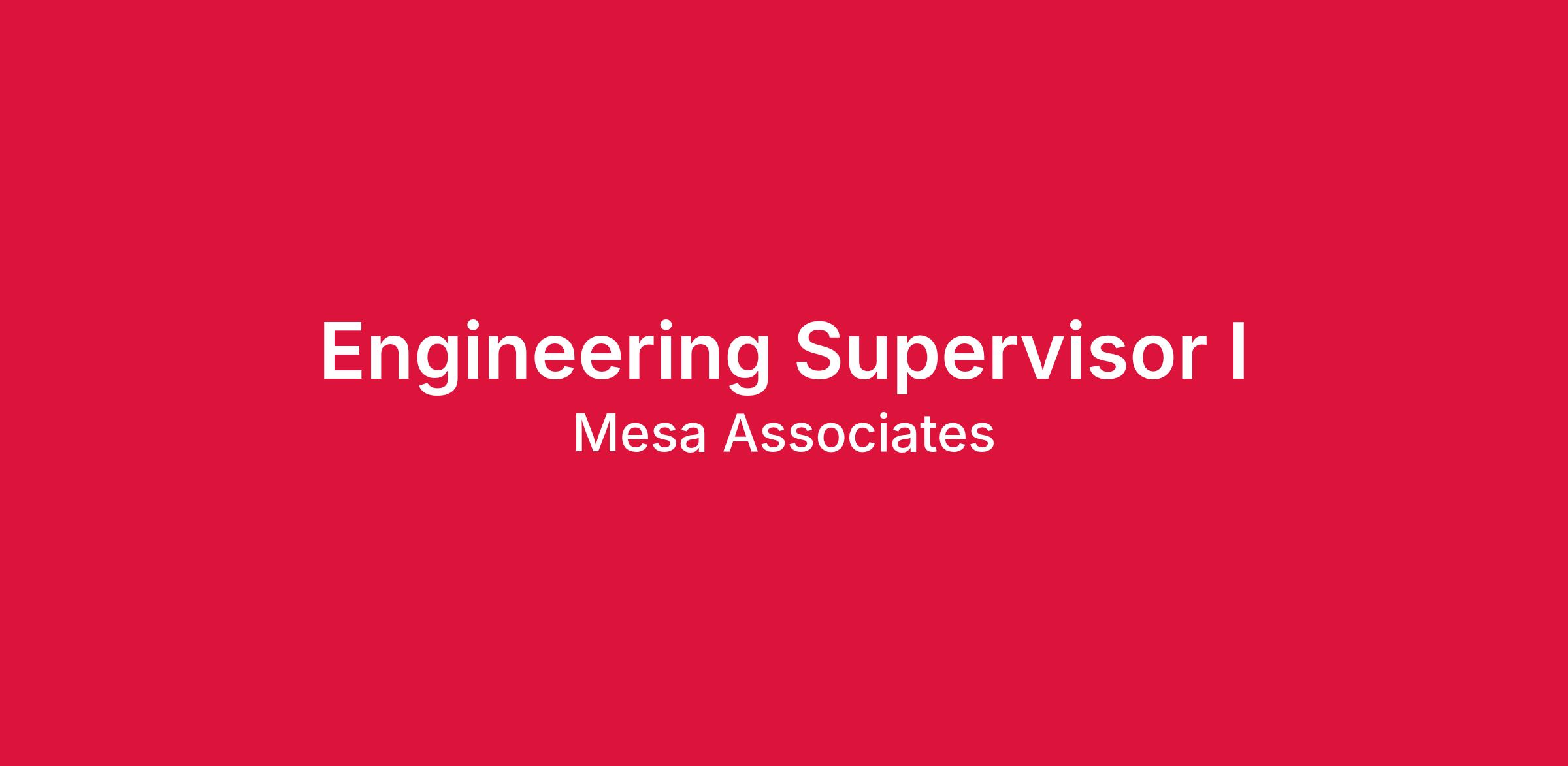 Notice to External Search Firms: Mesa Associates, Inc. and its subsidiaries do not accept unsolicited resumes and will not be obligated to pay a placement fee for unsolicited resumes. Mesa Associates, Inc. Talent Acquisition engages with approved search firms directly for specific hiring needs.