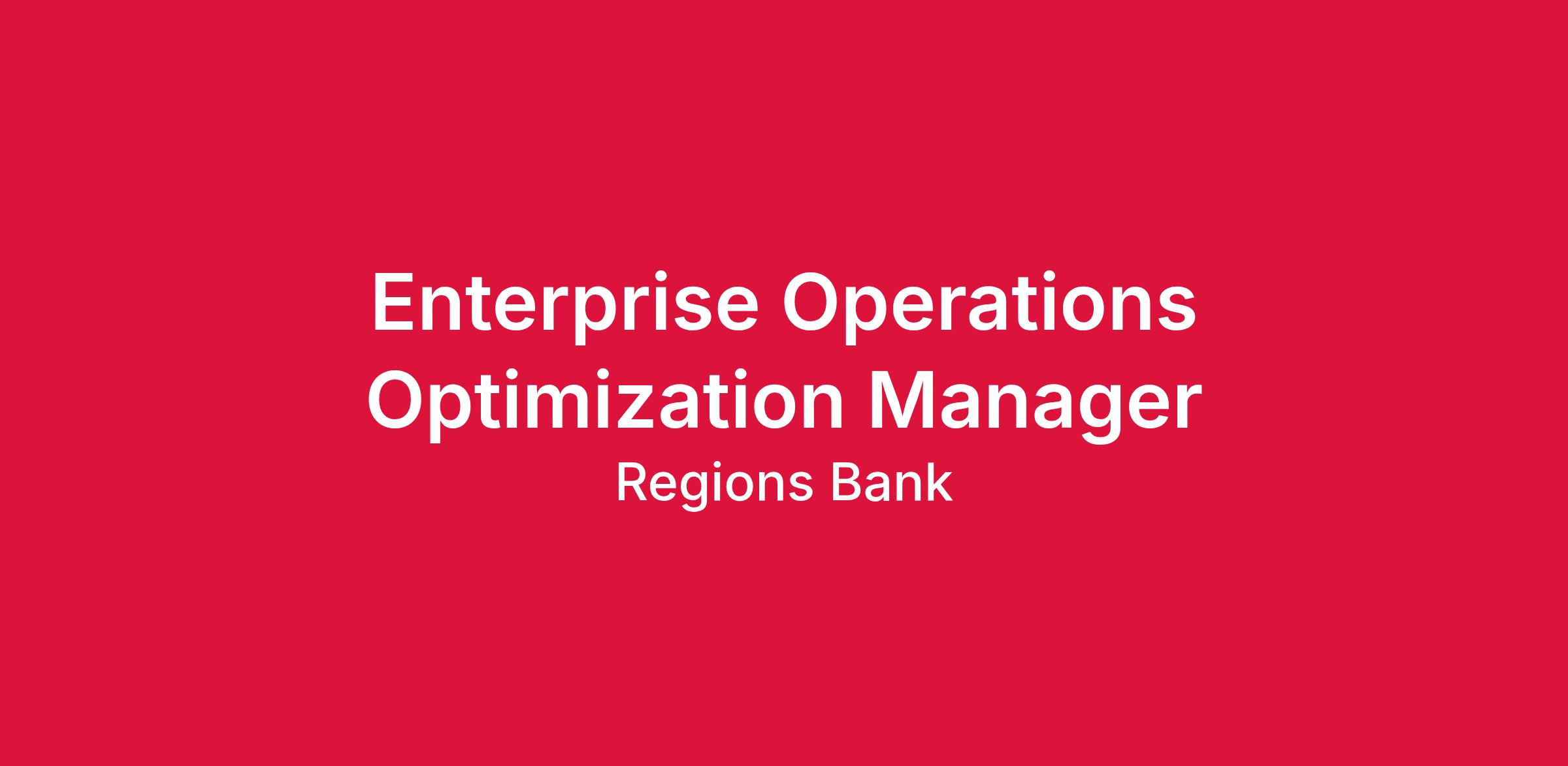 At Regions, the Enterprise Operations Optimization Manager is responsible for elevating enterprise performance by redesigning processes, optimizing workforce strategies, and deploying advanced technologies that strengthen efficiency, operational performance, workforce management, and customer experience. This position leads large‑scale operational modernization across multiple enterprise operations functions.