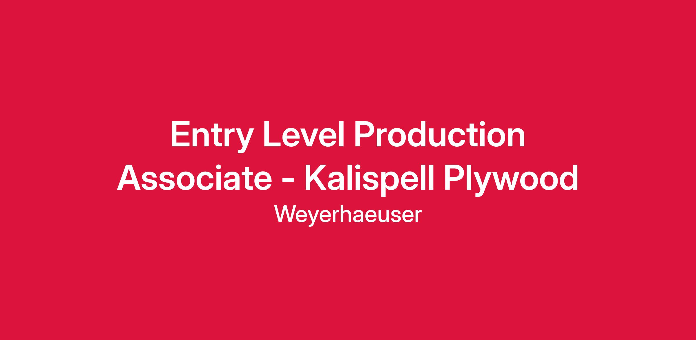 Weyerhaeuser is seeking individuals who are committed to safety, have a positive attitude, excellent work ethic and a desire to work in a manufacturing facility. Weyerhaeuser Company is currently looking for Entry Level Production team members to join our Kalispell Plywood facility.