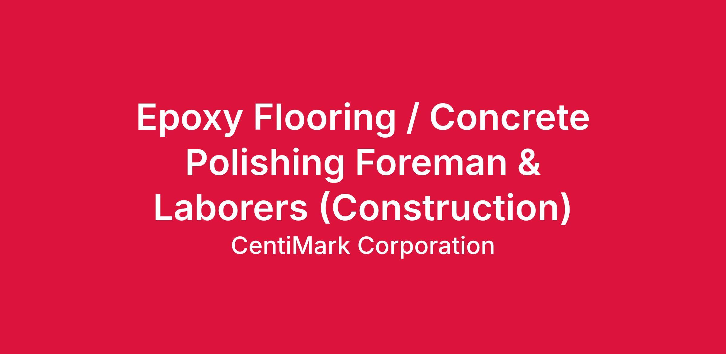 The successful candidate for our Epoxy Flooring / Concrete Polishing Crew & Foreman opportunities will demonstrate initiative, be a self-starter with a high level of professional integrity, and have a strong work ethic and competitive drive.