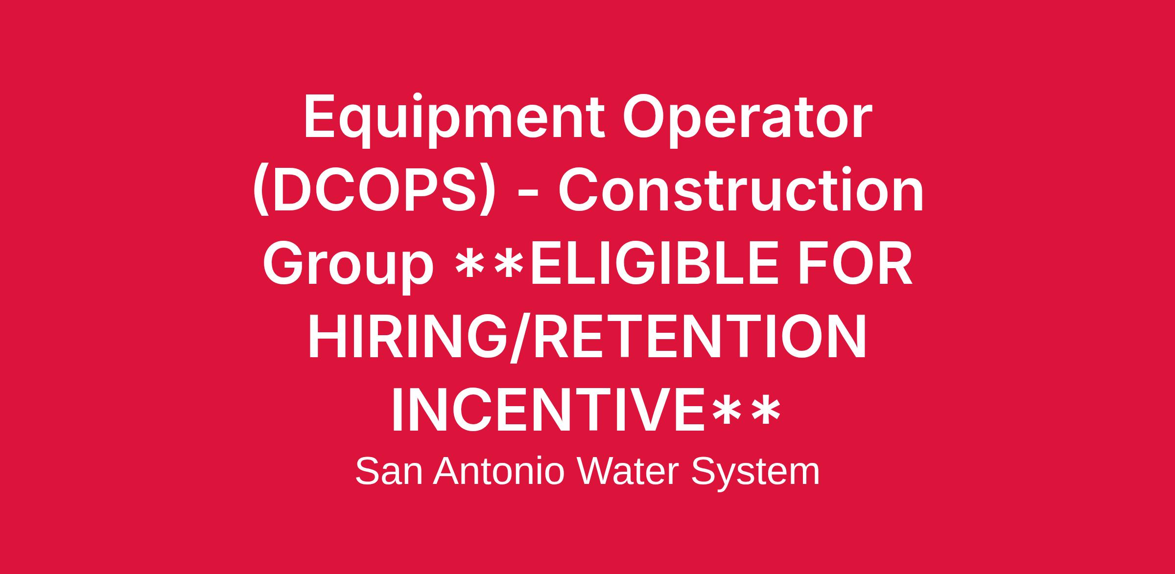 The Equipment Operator is responsible for performing a variety of labor duties to include operating and transporting light to heavy equipment for the repair, construction, and maintenance of the water distribution and wastewater collection system. This job has an automatic progression plan. An employee hired as an Equipment Operator will automatically advance to Senior Equipment Operator upon reaching 5 years of continuous experience as an Equipment Operator with SAWS.