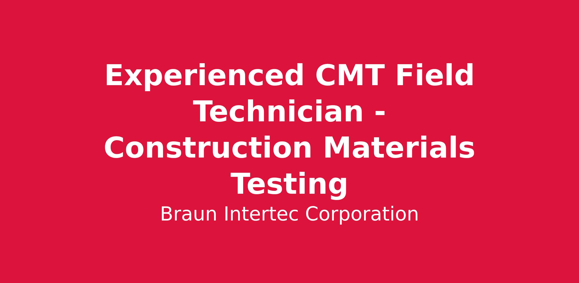 Braun Intertec is seeking Experienced Construction Materials Testing (CMT) Technicians to join our Lenexa, KS office. As a technician, you will perform a variety of testing on construction materials such as soils, concrete, masonry, and asphalt.Β Onsite materials testing is conducted on various industrial, commercial and transportation construction projects located throughout the region.