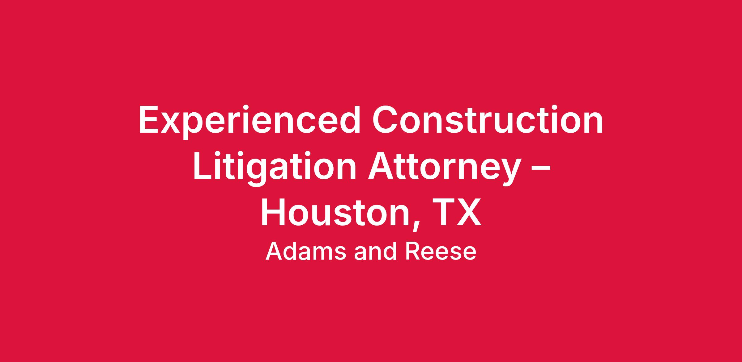 Adams and Reese is seeking an experienced attorney with 5+ years of experience in litigation, preferably with construction. This position requires excellent briefing and writing skills. Trial experience preferred. The ideal candidate will be a self-starter with strong academic credentials. Texas law license required. Full time in-office in Houston.