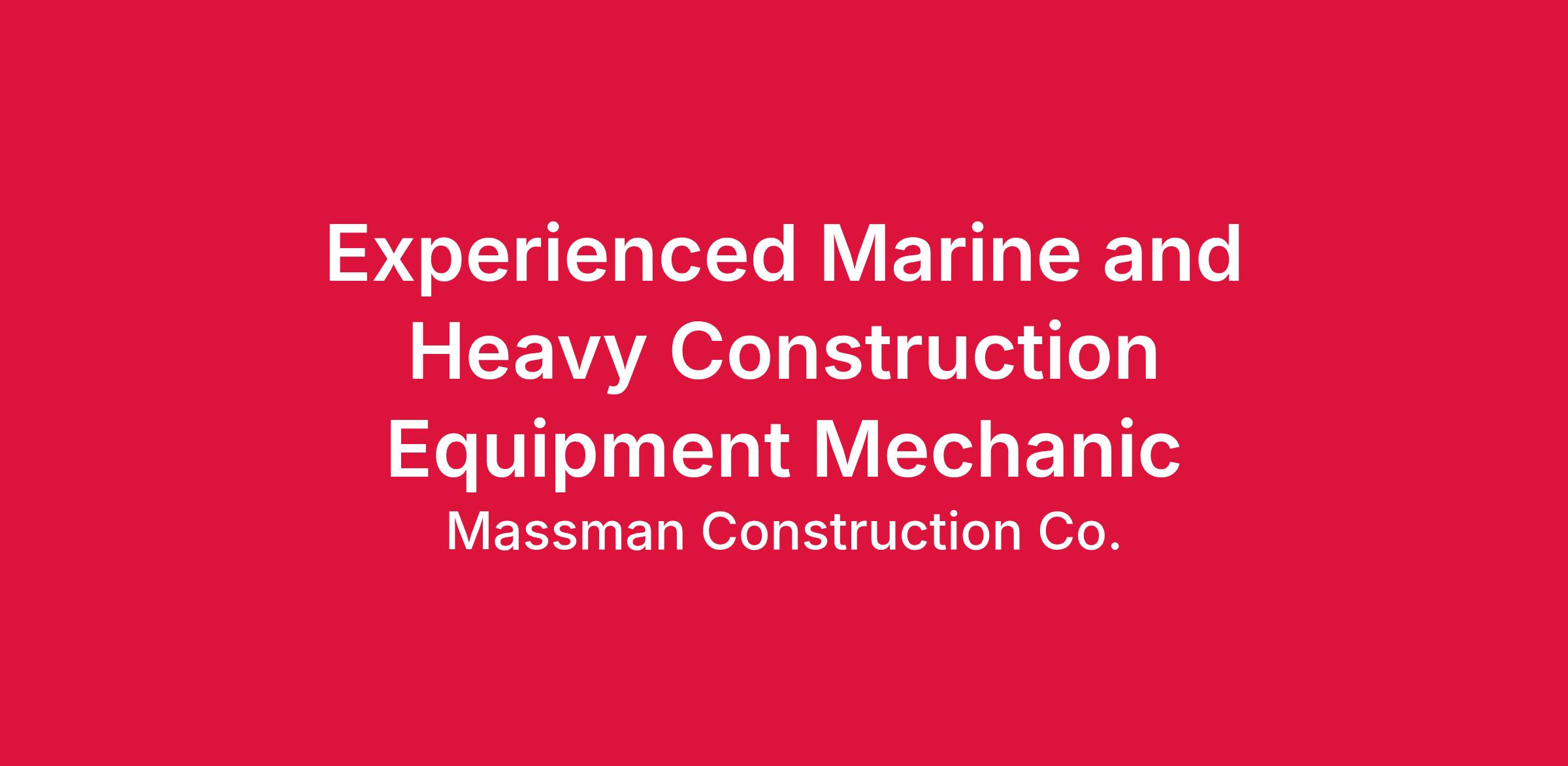 Experience: A minimum of 5 years of hands-on experience in repairing and maintaining heavy construction and marine equipment is advantageous.