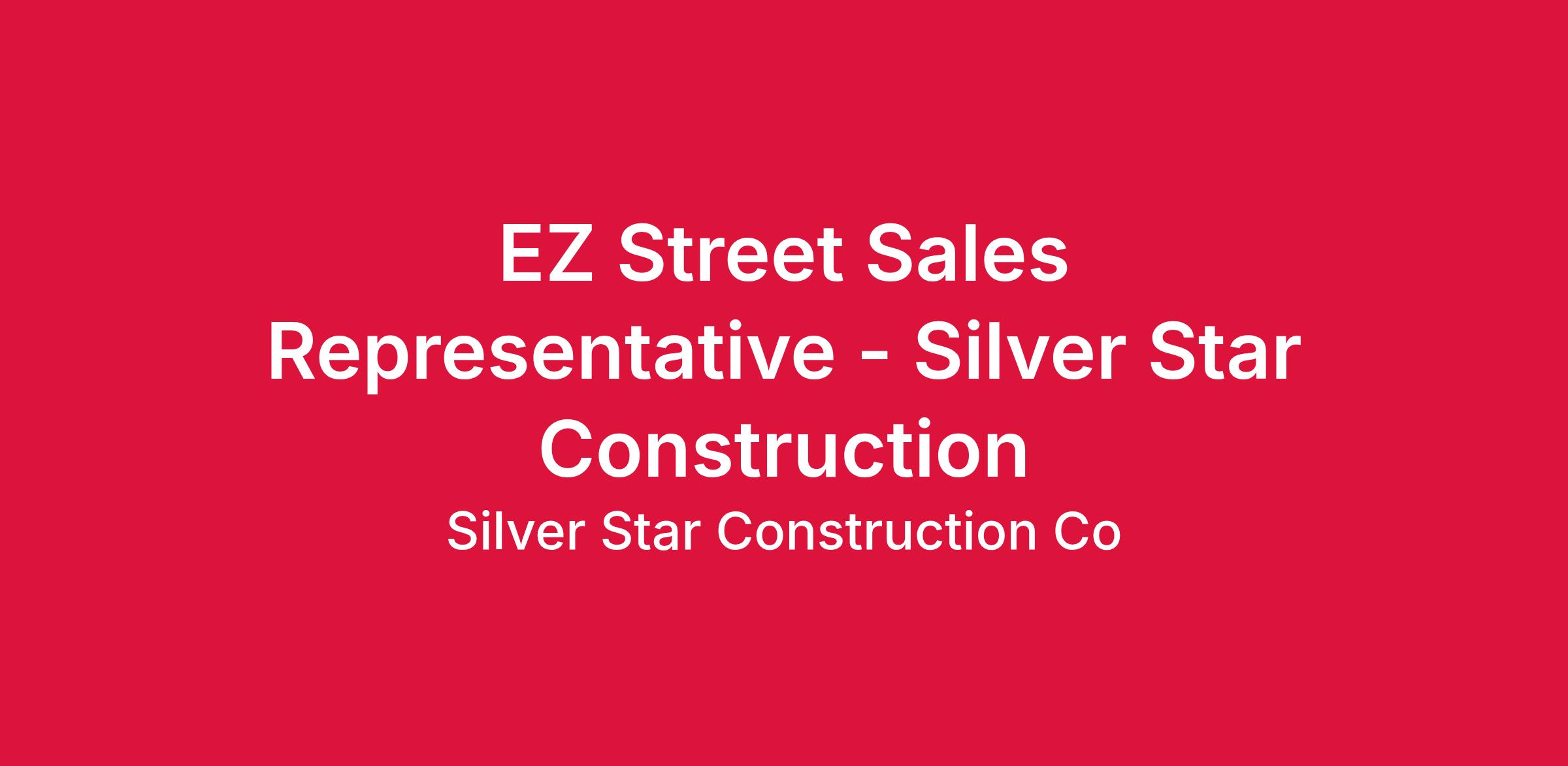 Silver Star Construction is seeking a full time Sales Representative for our EZ Street Asphalt product. Our employee-owned company is seeking an experienced Sales Representative to join our team for our projects in various locations throughout the OKC Metro and surrounding areas. Silver Star Construction is seeking an individual that aligns with our core values (Safety, Dependability, Relationships, Innovation, and Quality) and adheres to them daily.