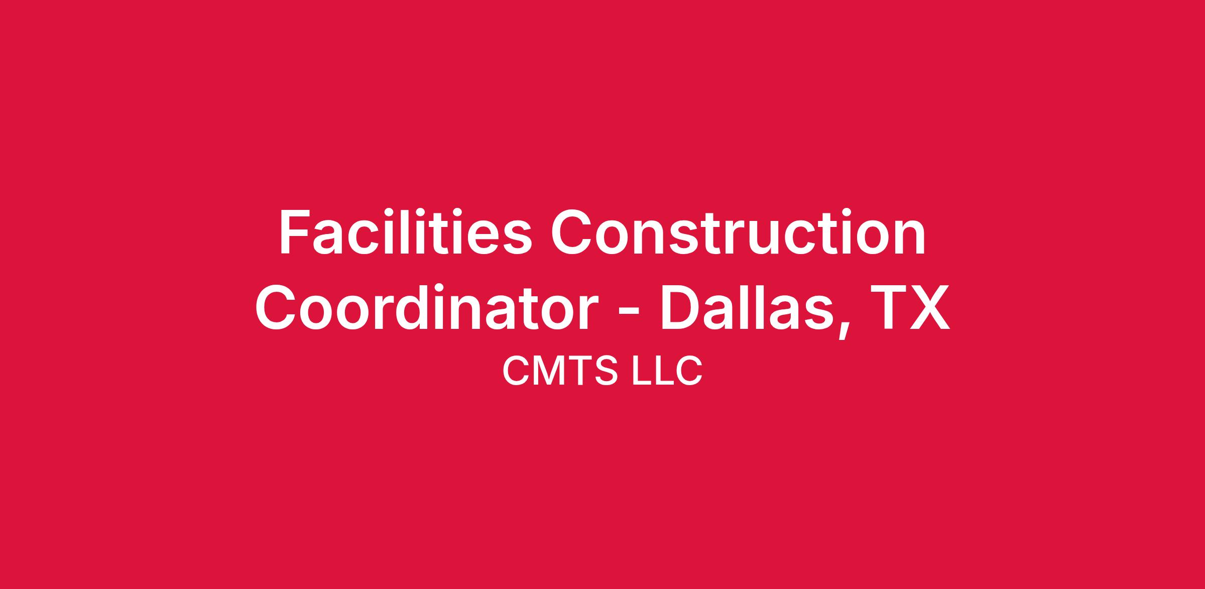 CMTS is seeking a highly motivated Facilities Construction Coordinator to support construction projects in Dallas, TX. This role is responsible for coordinating project activities, maintaining documentation, supporting procurement and contract processes, and ensuring projects are executed efficiently from start-up through closeout. The position requires strong organizational skills, attention to detail, and the ability to communicate effectively with project teams, contractors, and stakeholders.